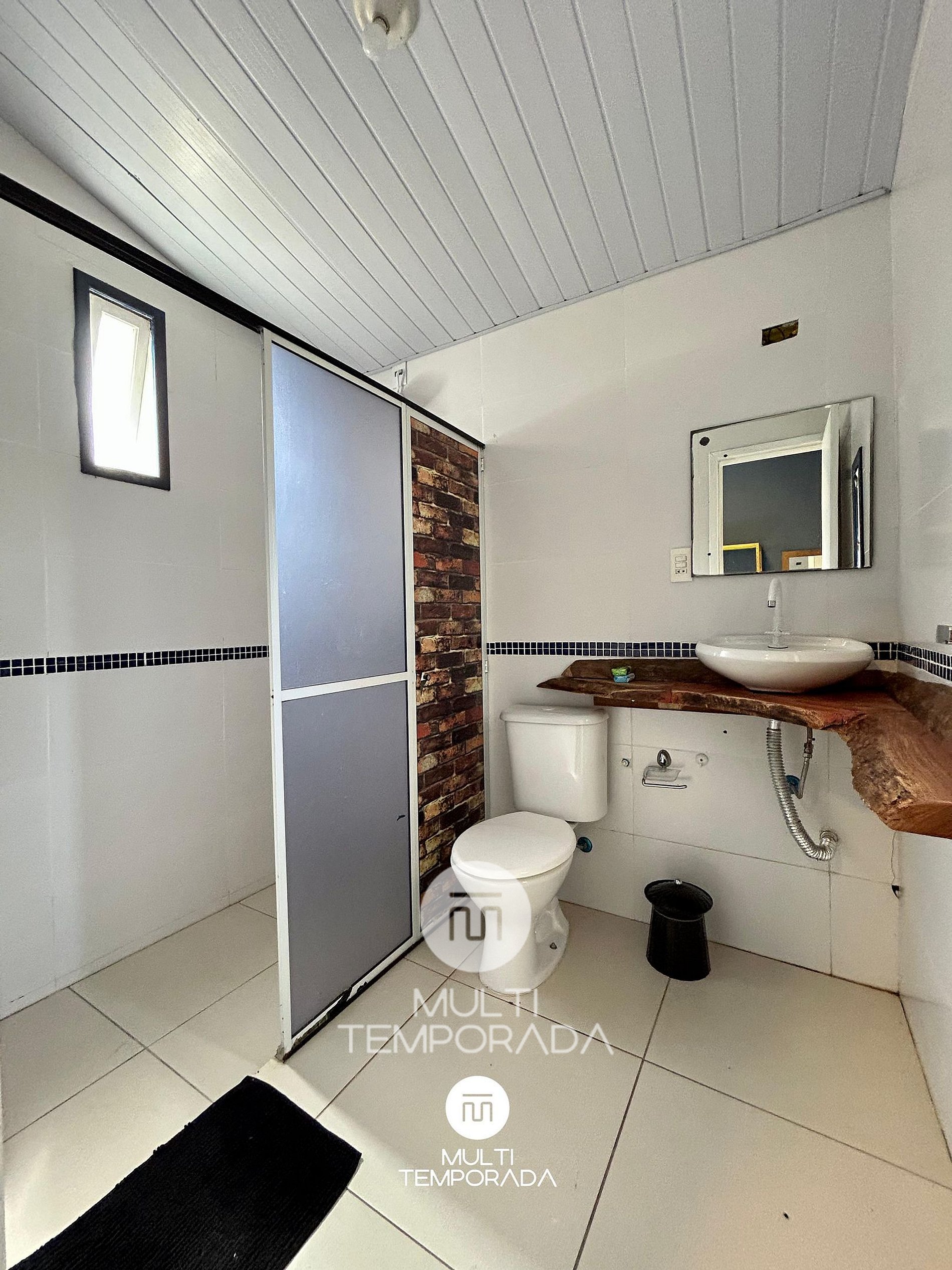 Além da suíte, a pousada dispõe de banheiro compartilhado, destinado ao uso das áreas comuns, mantido com organização e conforto.