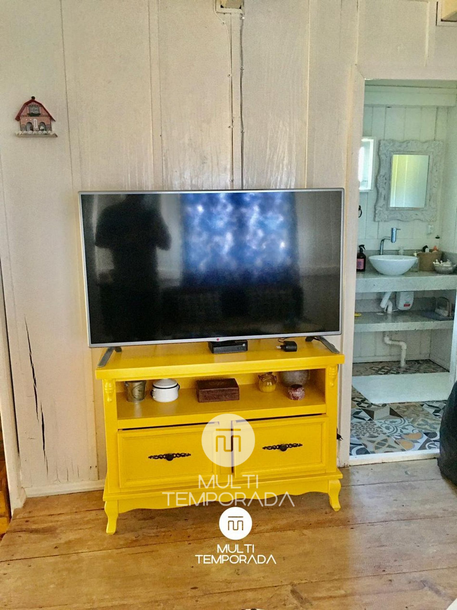 A área social é acolhedora e funcional, ideal para momentos de descanso e convivência após os passeios pela serra. A sala de estar conta com TV de 42”, equipada com canais a cabo, perfeita para momentos de lazer.