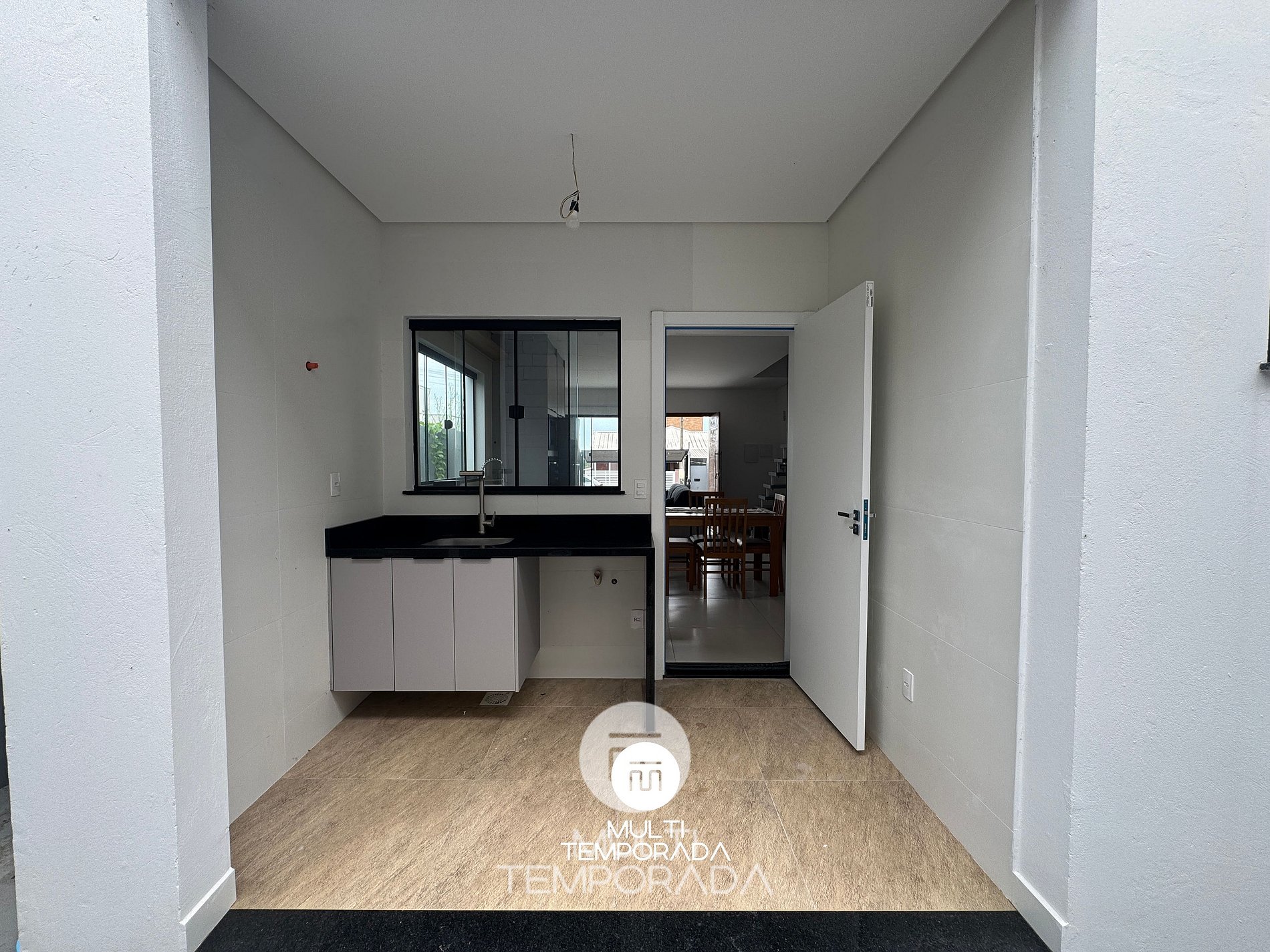 A área externa dispõe de pátio com pia e armário, oferecendo apoio e funcionalidade para o uso diário.
