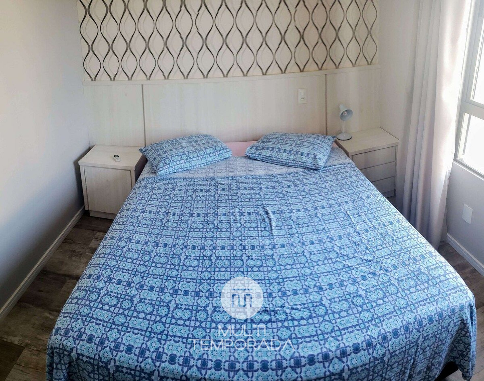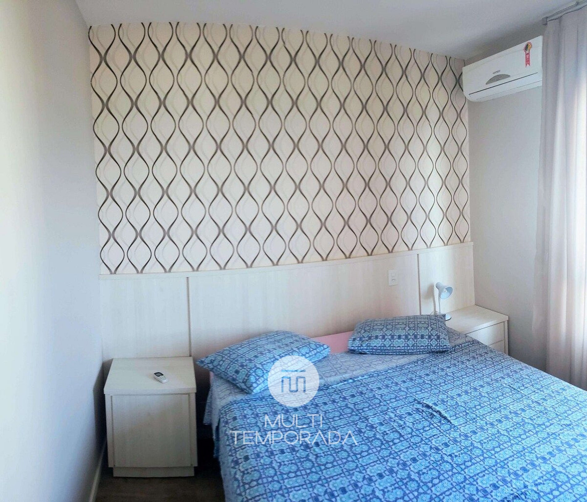 *Quarto: Cama de casal, criados mudos, ar condicionado, TV Smart 40 pol. e armário espelhado.