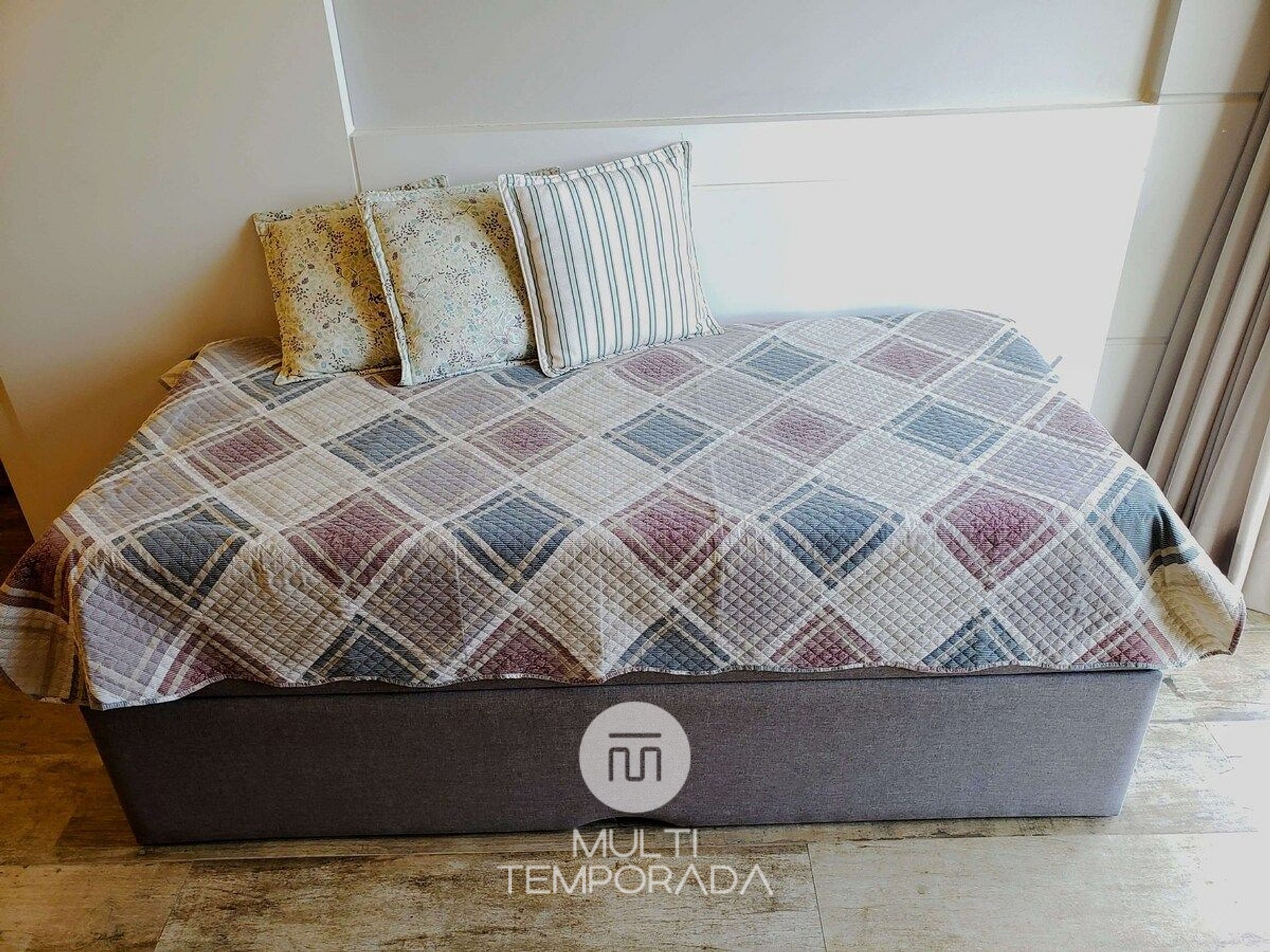 *Quarto: Cama de casal, criados mudos, ar condicionado, TV Smart 40 pol. e armário espelhado.