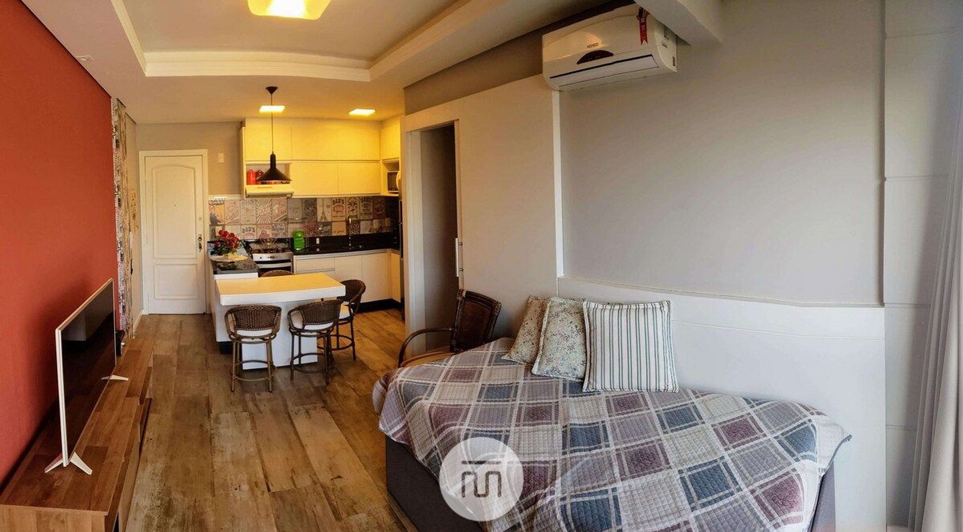 O Apartamento recém reformado, com saída direto do condomínio para a praia, ótima localização, com ar condicionado na sala e no quarto. O sofá que fica na sala dá pra fazer cama de casal ou de solteiro.