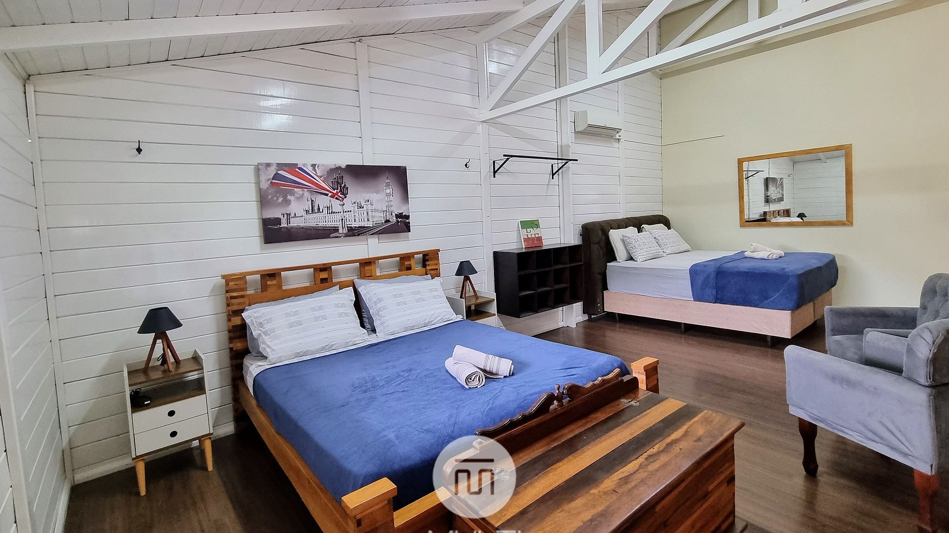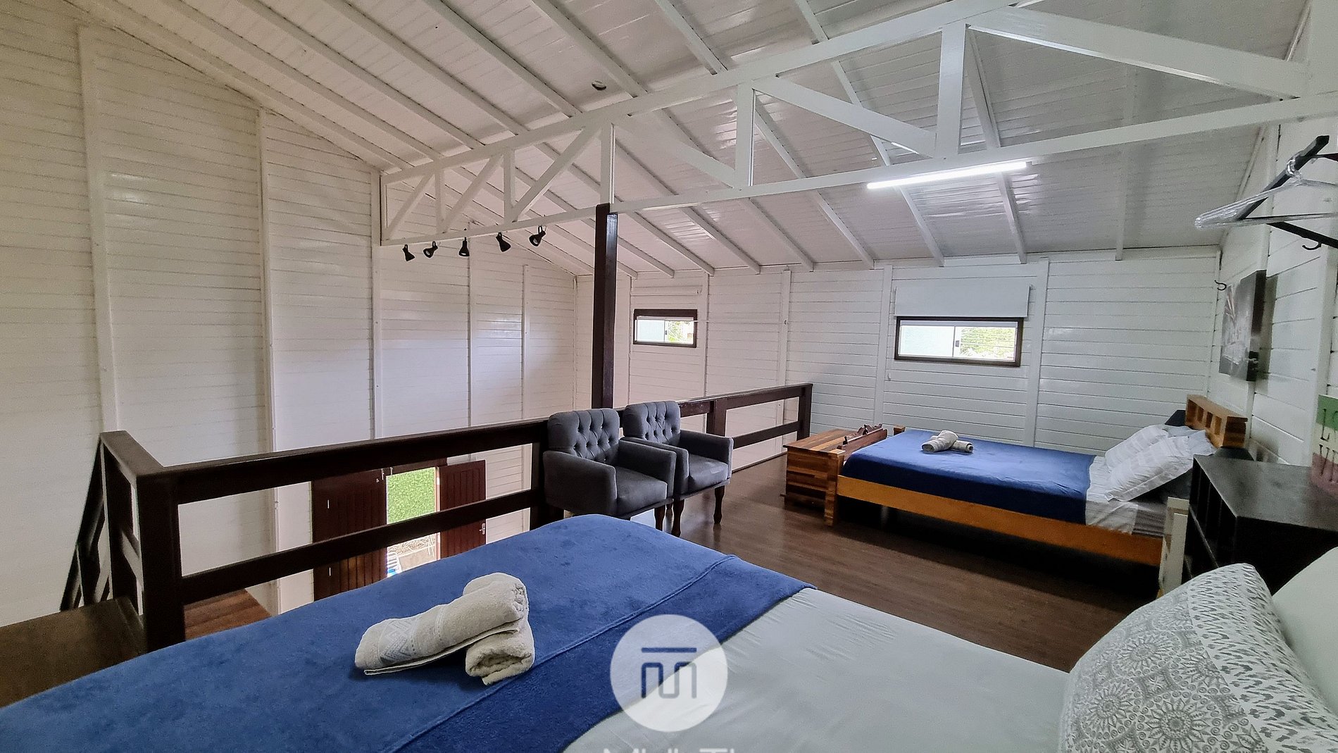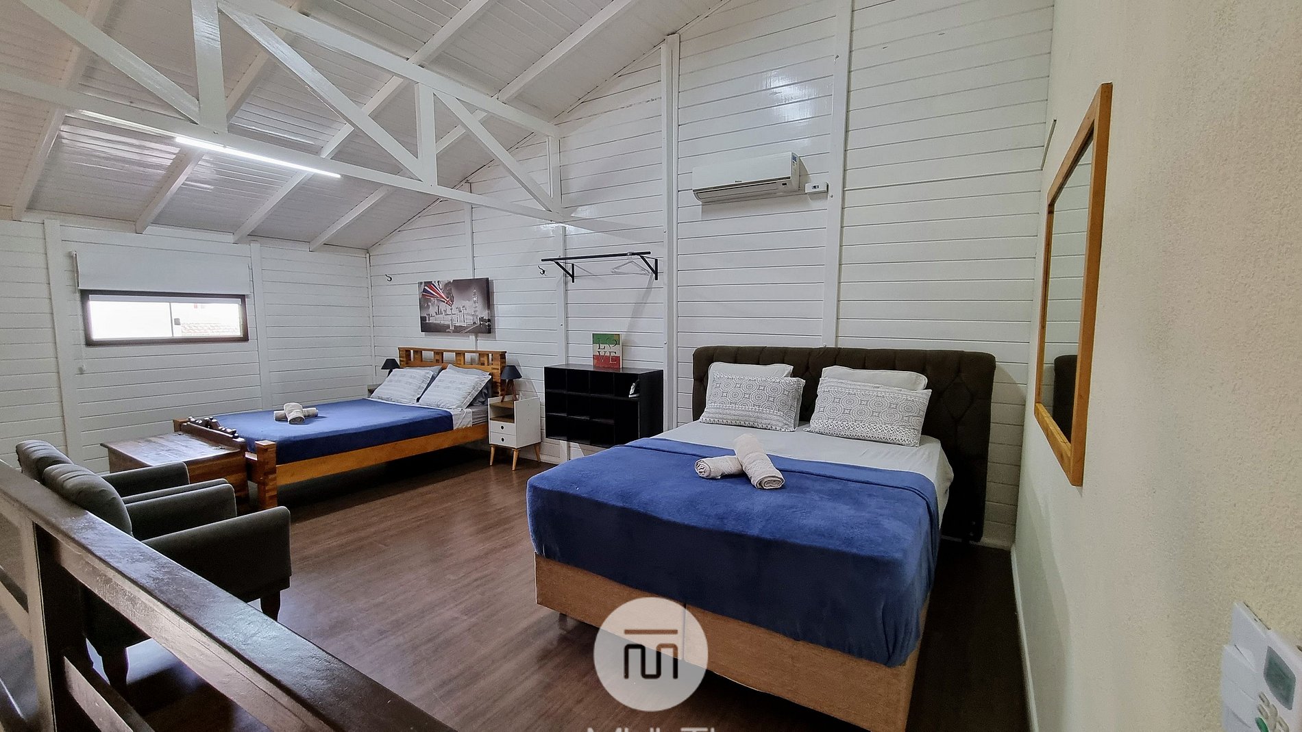 *Quarto (estilo mezanino): Uma cama de casal queen-size e uma cama de casal, ar-condicionado e banheiro.