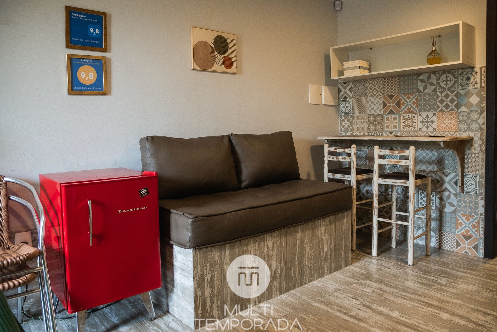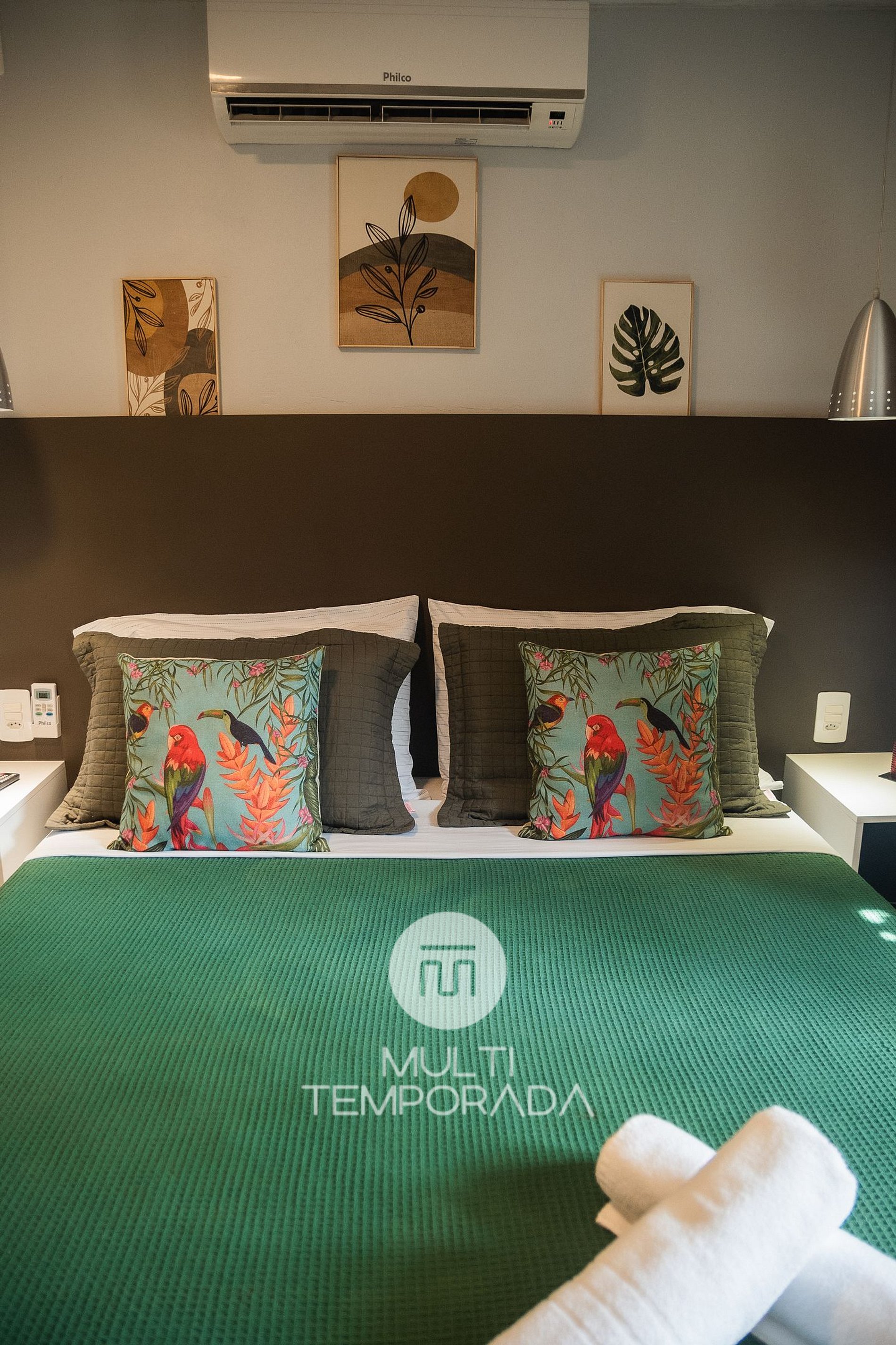 O Studio é compacto (28m²), confortável e climatizado com cama de casal, banheiro privativo, frigobar, micro-ondas, torradeira, chaleira elétrica, bem como utensílios de cozinha. Além disso ela possui TV Smart 32'' e varanda com rede para o seu descanso.