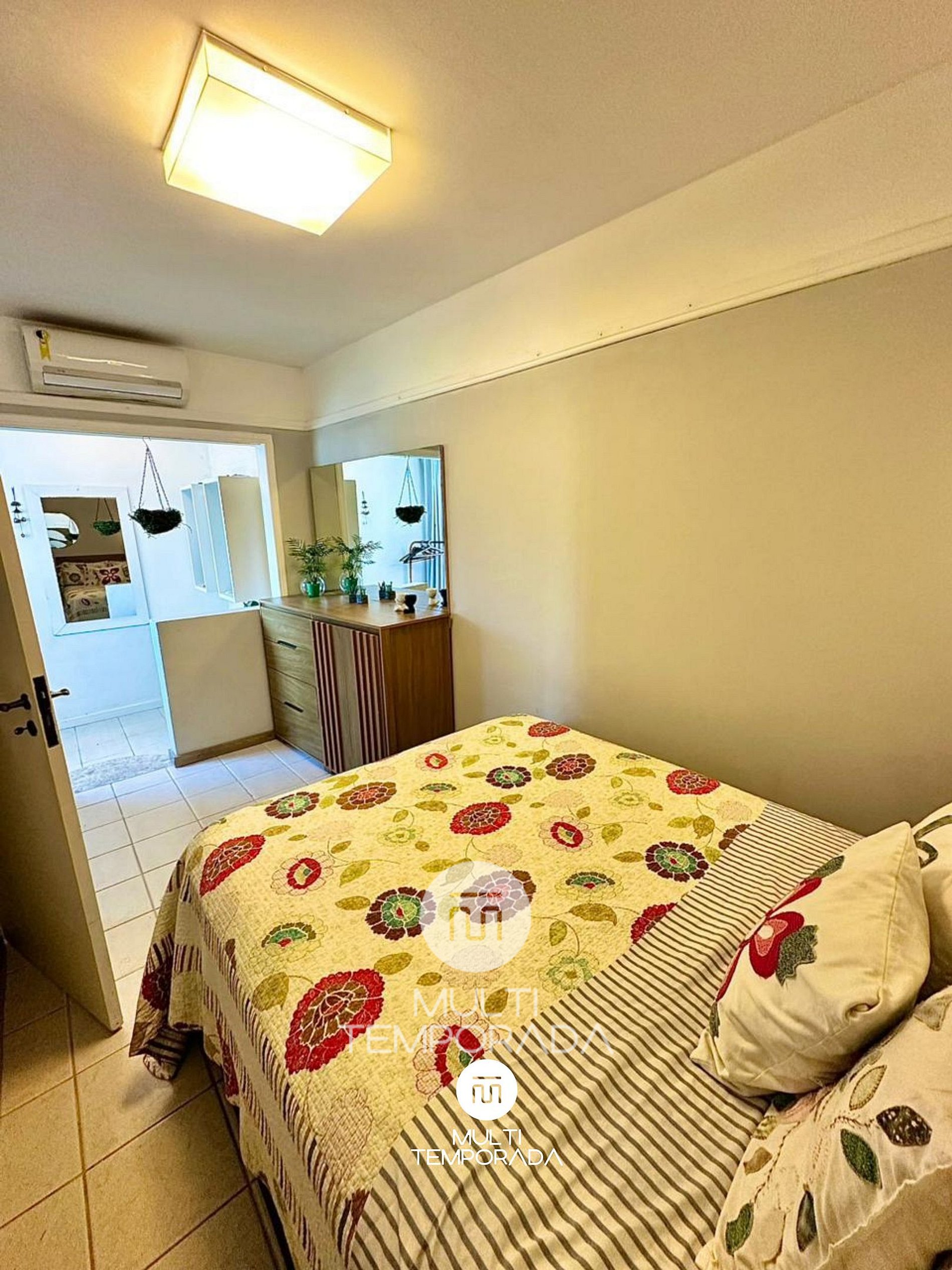 O apartamento dispõe de 2 dormitórios, cuidadosamente preparados para garantir noites confortáveis e climatizadas: