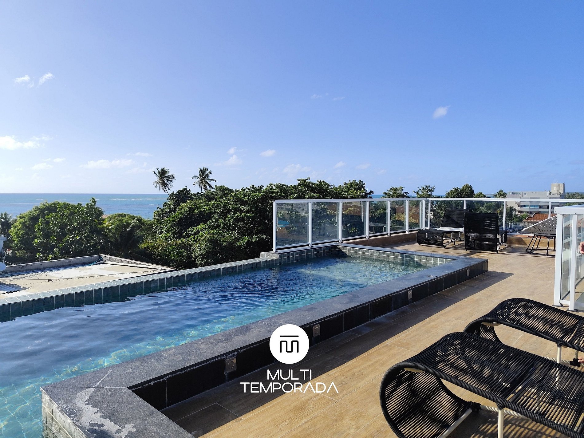 A Multitemporada apresenta o Flat Miray Exclusive c/ Piscina, na Praia das Campas/PE, uma opção prática e confortável para até 4 pessoas. Com 1 dormitório com cama de casal e sofá-cama na sala, dispõe de ar-condicionado, Wi-Fi, cozinha completa e TV 32”. Possui varanda, 1 vaga e elevador. O destaque fica para o rooftop com piscina, vista para o mar e área gourmet com churrasqueira.