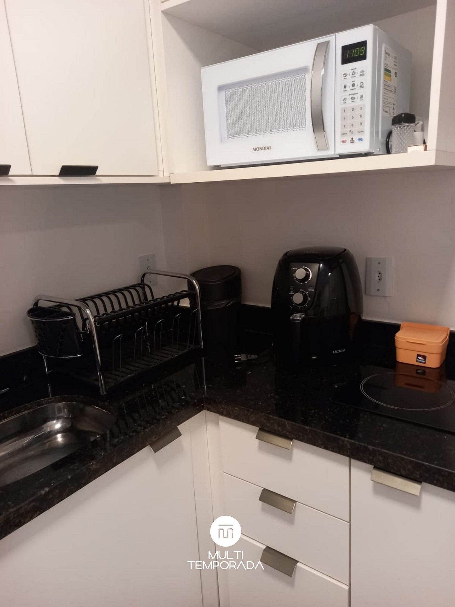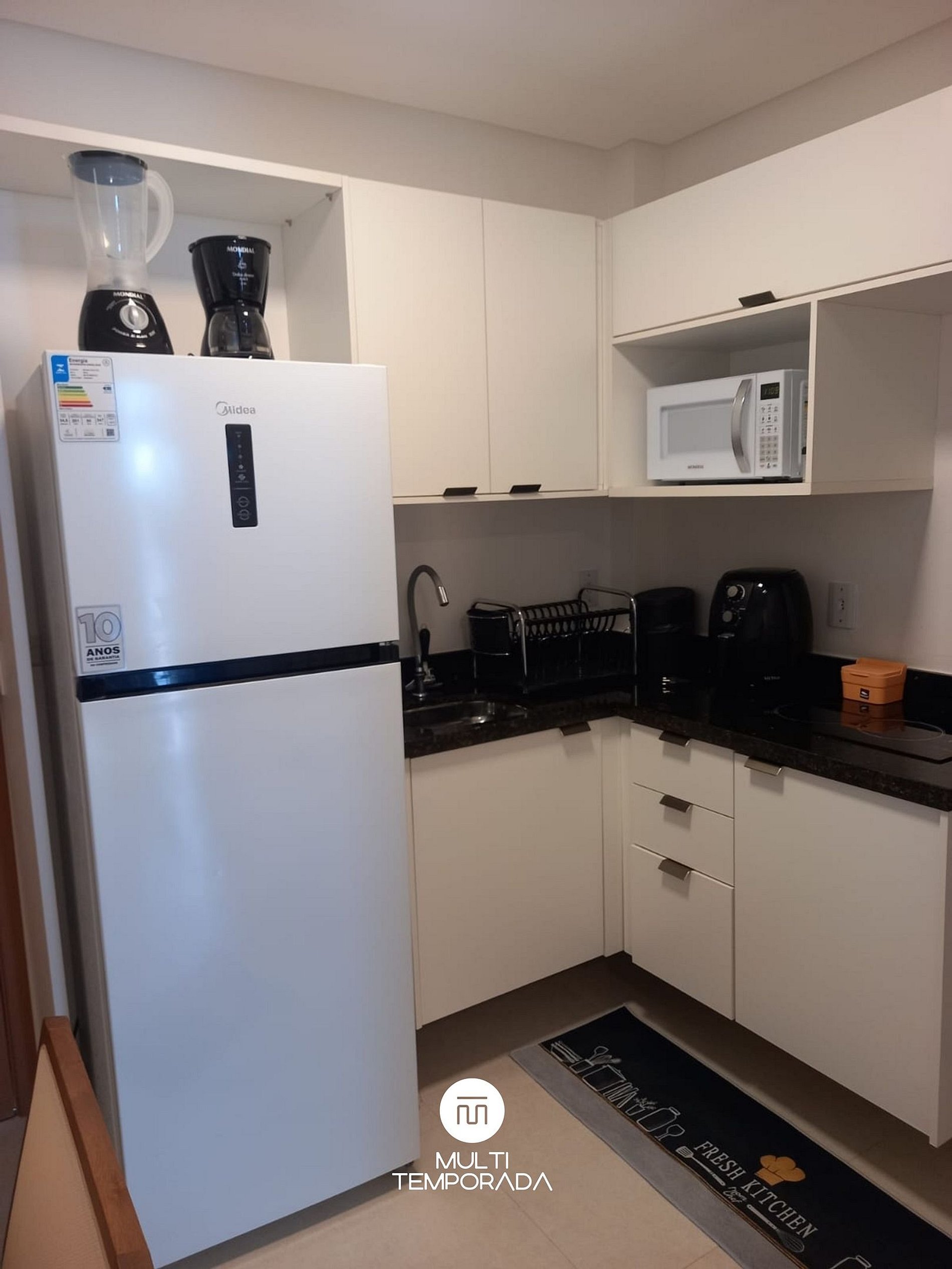 O imóvel possui 1 dormitório com cama queen, ar-condicionado, armários, gaveteiro, cabides, ventilador, ferro de passar com tábua, além de enxoval completo com lençóis, travesseiros, mantas e protetor impermeável de colchão.