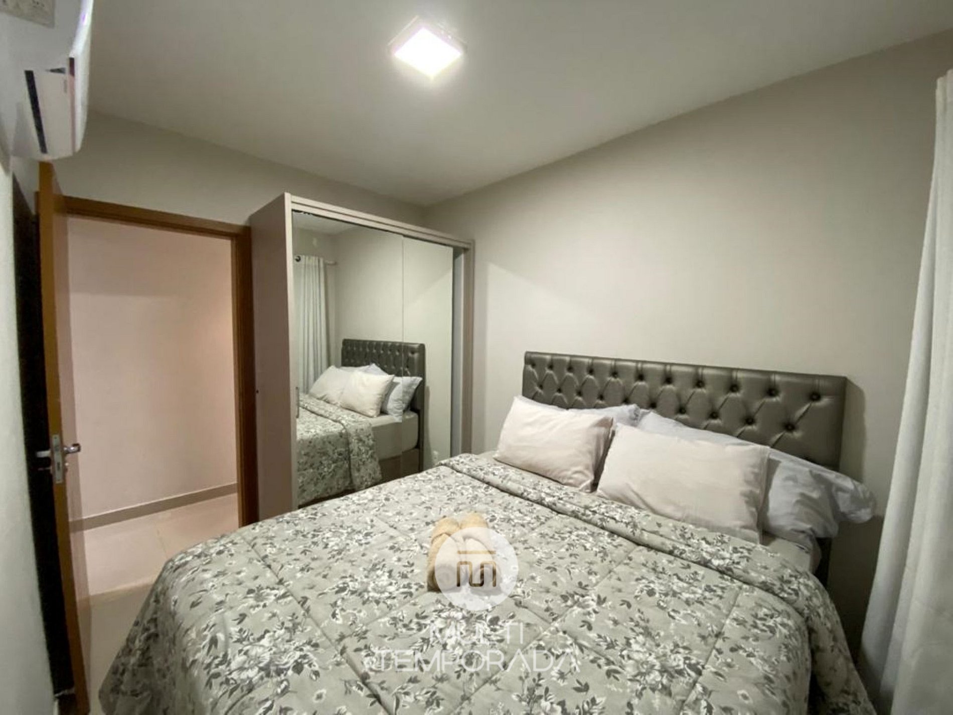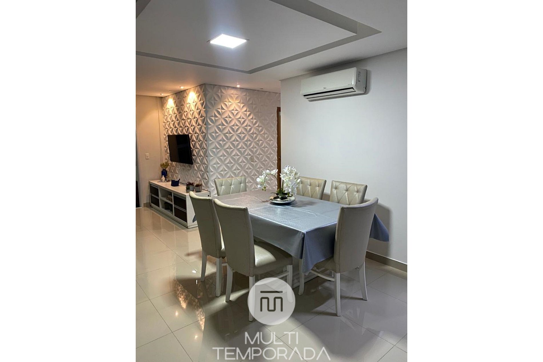 São 70 metros quadrados com varanda com churrasqueira, três quartos climatizados, sendo uma suíte , cozinha e sala integrados com ar-condicionado split também. A cozinha é equipada com fogão, forno, geladeira duplex, freezer, microondas, lava-louças, sanduicheira, cafeteira e todos utensílios necessários para fazer uma boa refeição. A sala climatizada possui uma TV Smart. Possuímos Wi-Fi no apartamento (110 mega), além da internet oferecida pelo próprio condomínio, rouparia de cama e banho completa e máquina de lavar roupas.