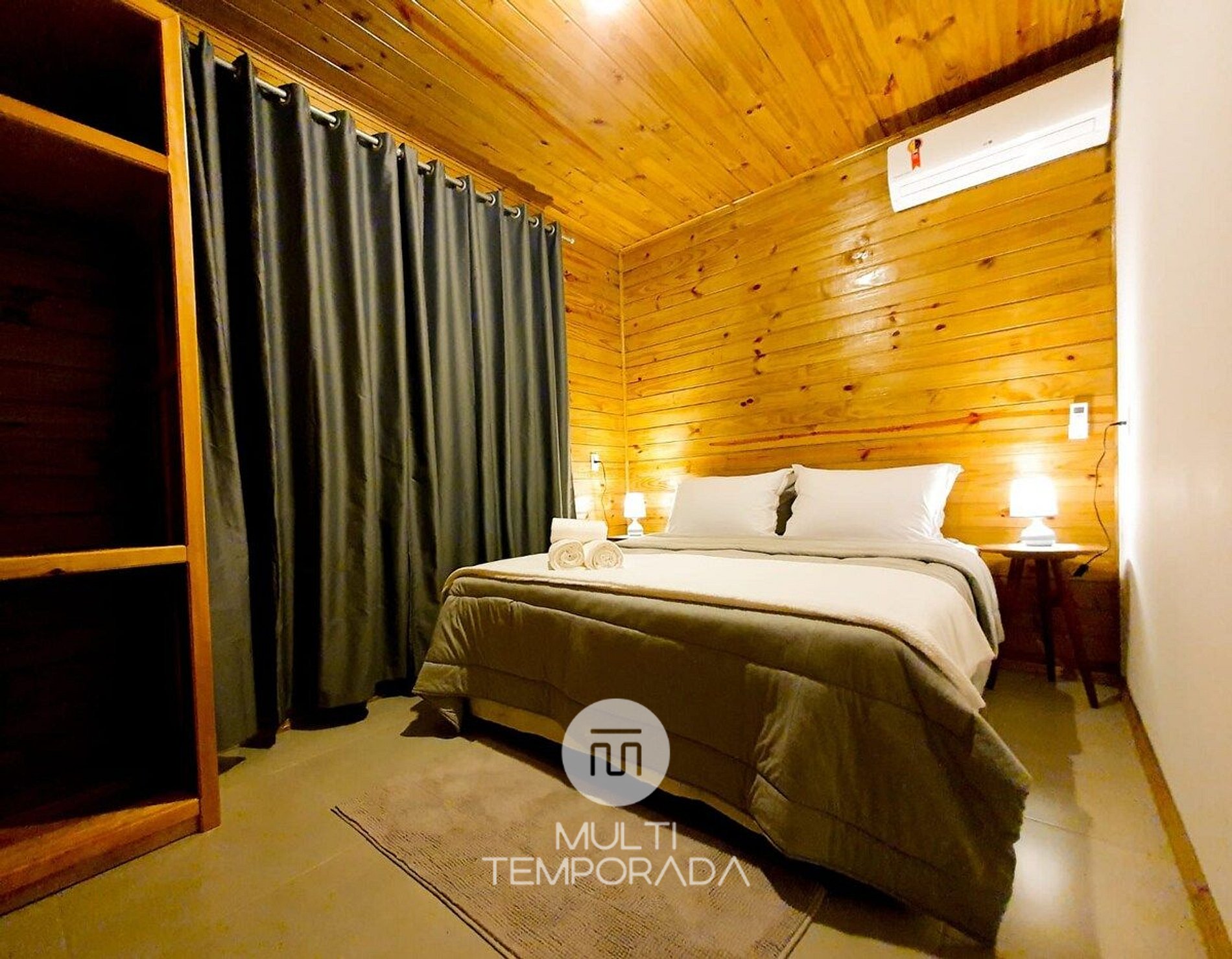 Dormitórios: A casa dispõem de 2 suítes, onde cada um é composto por uma confortável cama de casal (tamanho queen-size), um guarda-roupa e ar condicionado quente e frio.