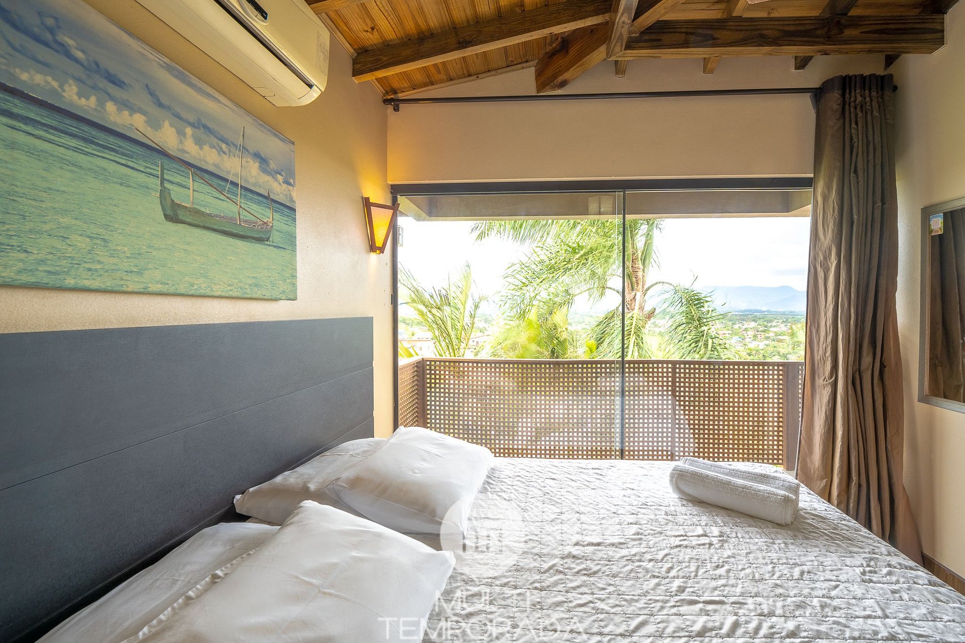 Dormitório: Cama Queen-Size + Ar-Condicionado Quente e Frio + Sacada;