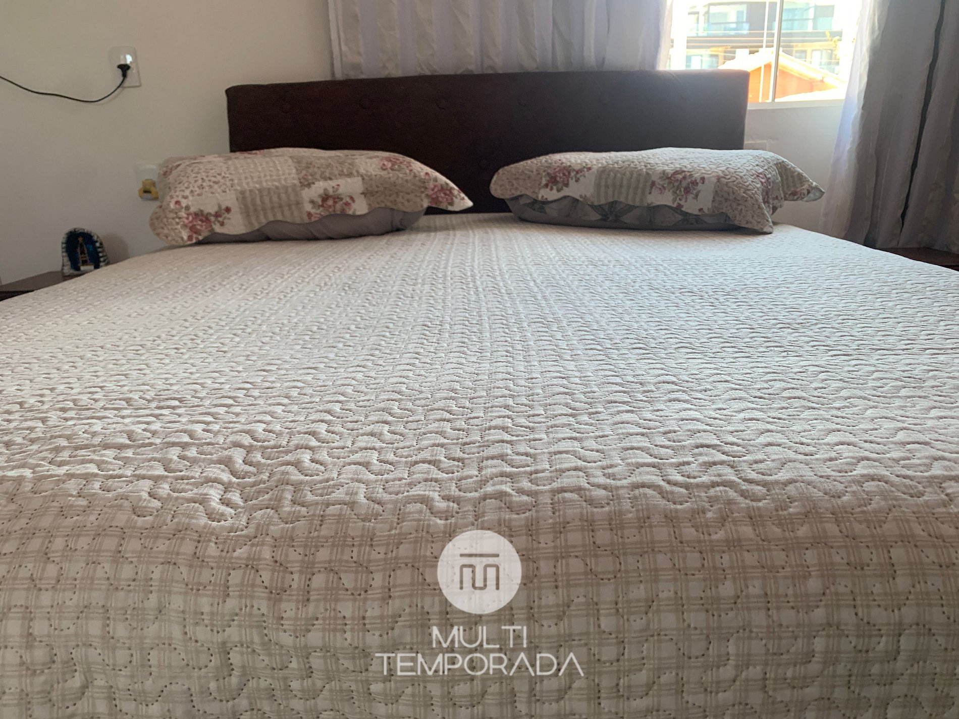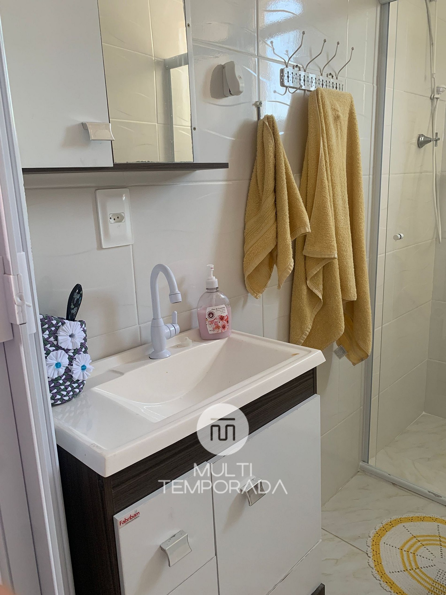 Comodidades da unidade: Churrasqueira privativa, internet Wi-Fi de 1000 mega, roupas de cama, travesseiros e cobertores, toalhas de banho, TV Smart 55’' com TV BOX, máquina de lavar e ferro de passar.