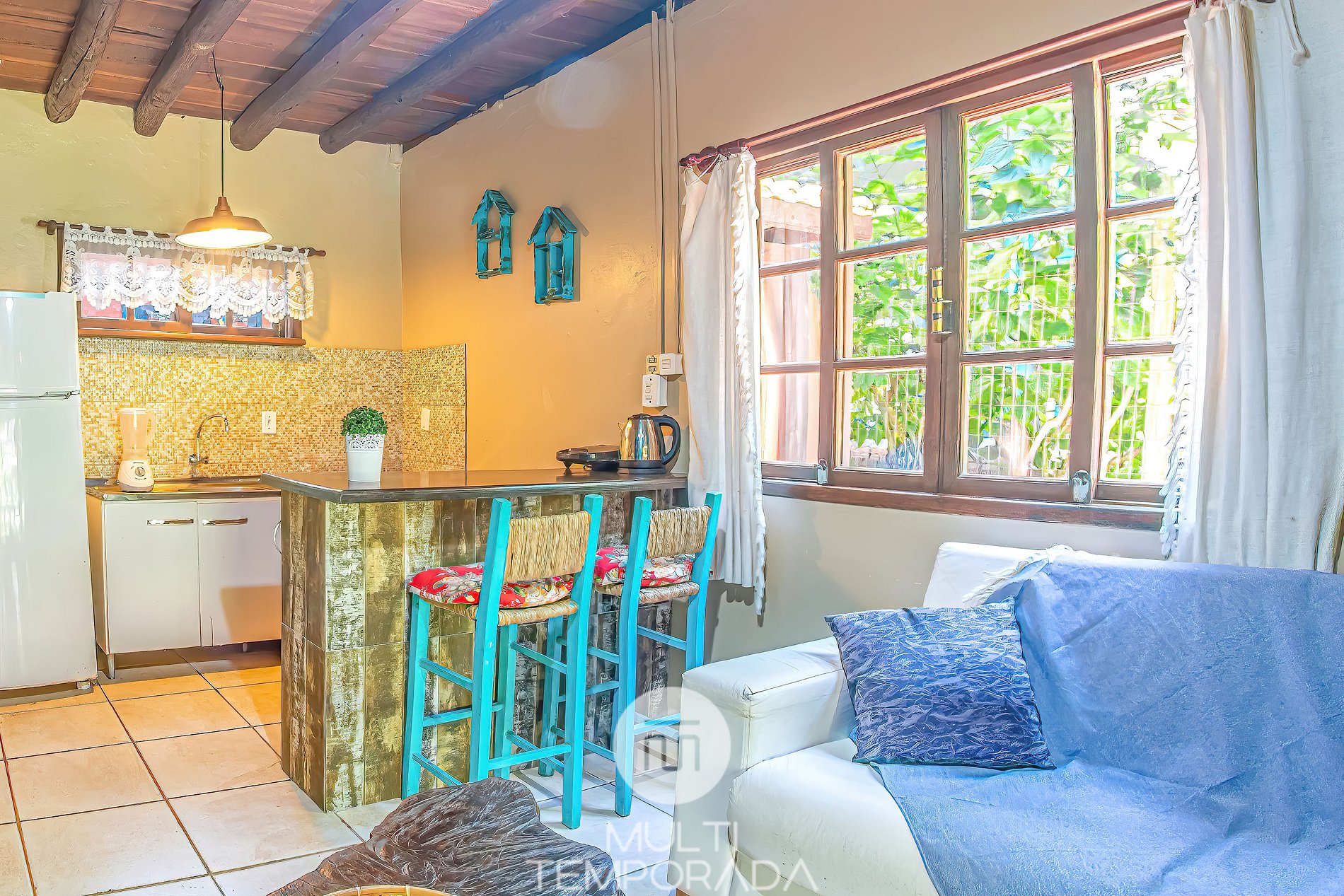 A Casa Deluxe com Vista Jardim, localizada em piso térreo possui 50m² e 2 pavimentos. Conta com 2 Dormitórios, Ar condicionado, TV Smart 32'', cozinha completa, sala de estar, varanda térrea e banheiro em piso térreo amplo com chuveiro elétrico, garantindo maior praticidade e bem-estar aos hóspedes;