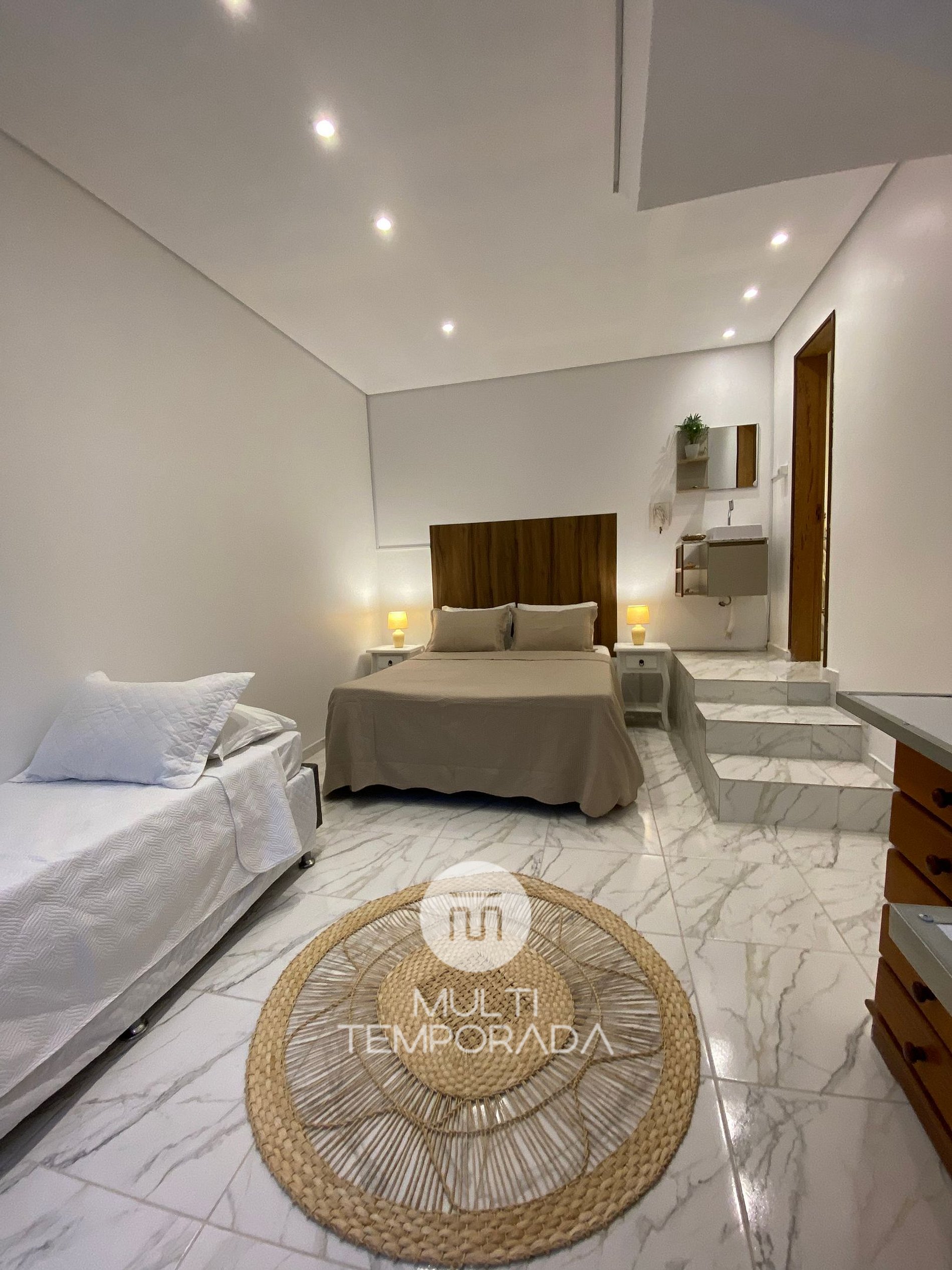 Dormitório: Cama Queen-Size + Cama de Solteiro + Ar-Condicionado Quente e Frio;