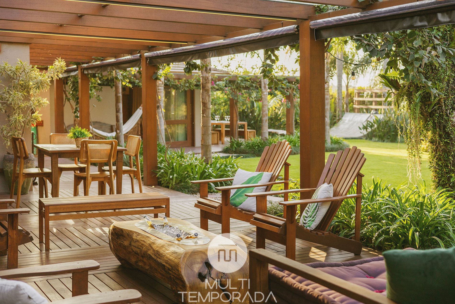 Com 1.100m² de terreno, o Santi Sabai Ibira oferece o espaço ideal para grupos que prezam por privacidade e conforto. A propriedade consiste em 3 casas interligadas por um deck de madeira coberto por pergolado, proporcionando uma atmosfera que integra os ambientes com a natureza.
