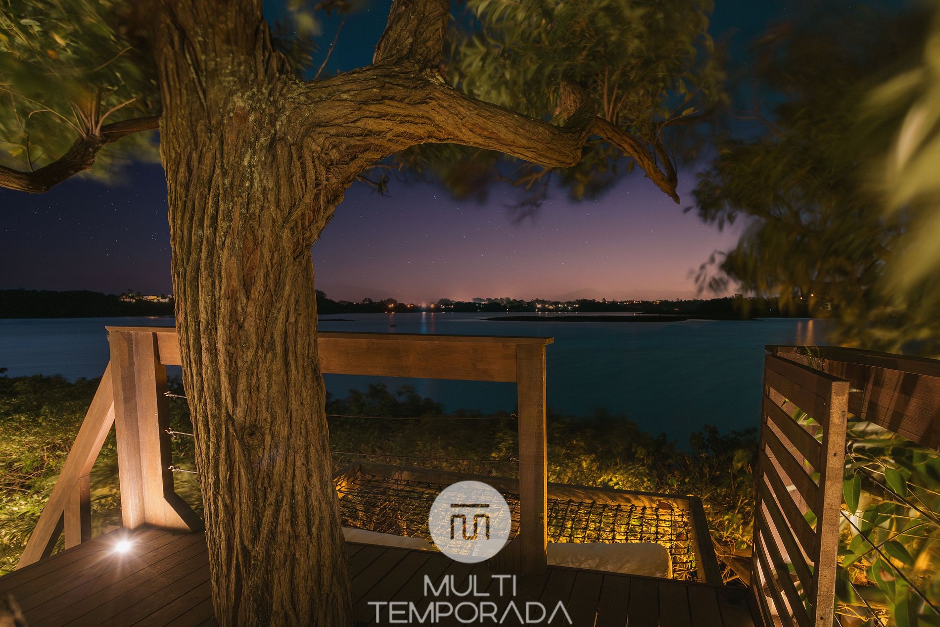 Se preferir desacelerar, aproveite o jardim, cuidadosamente desenhado para promover bem-estar, ou exercite-se na área ao ar livre com barra, paralela e prancha de abdominais. Para encerrar o dia, desfrute de noites estreladas ao redor da fireplace ou suba ao mirante na casa na árvore para contemplar a vista espetacular da Lagoa de Ibiraquera.