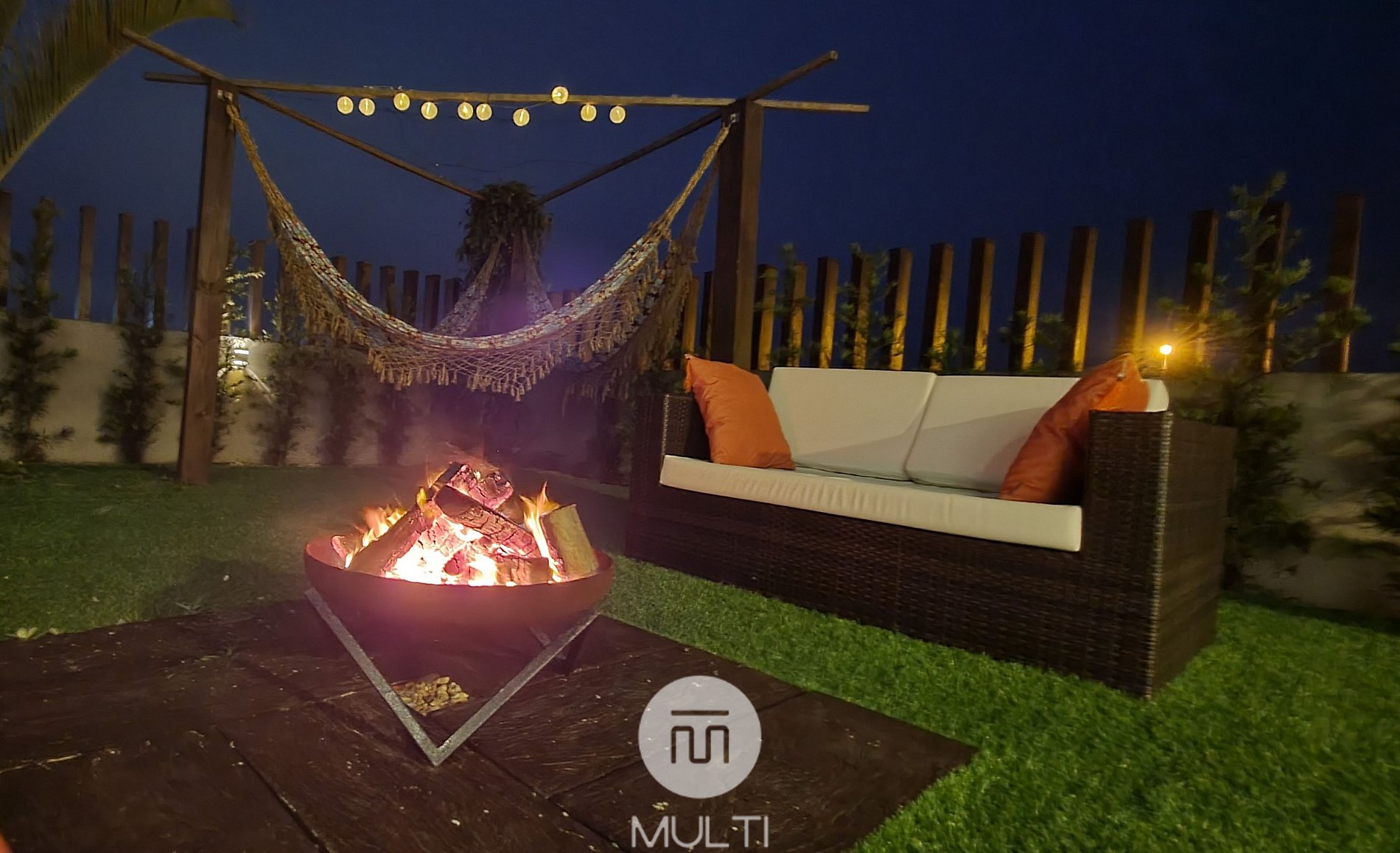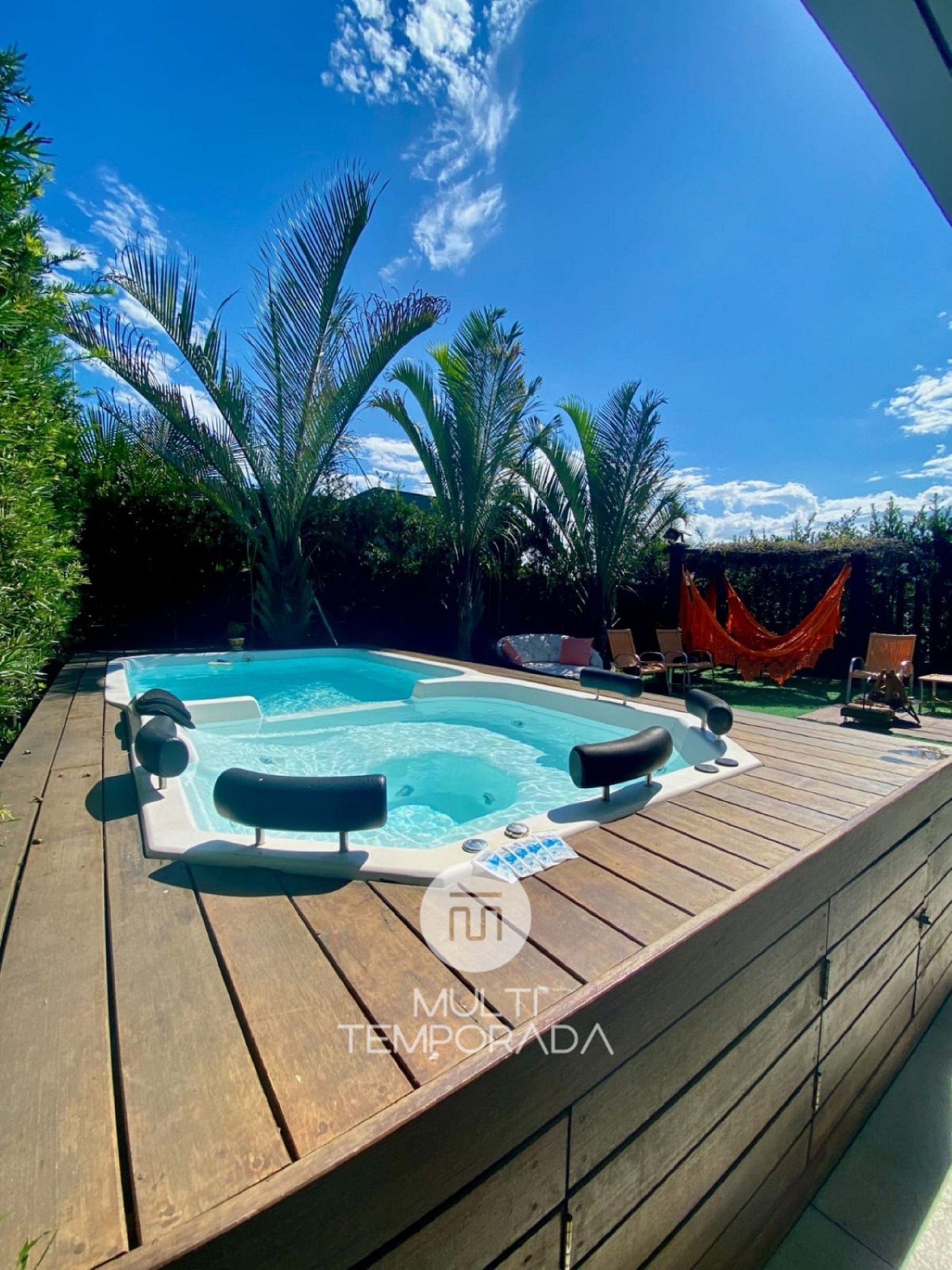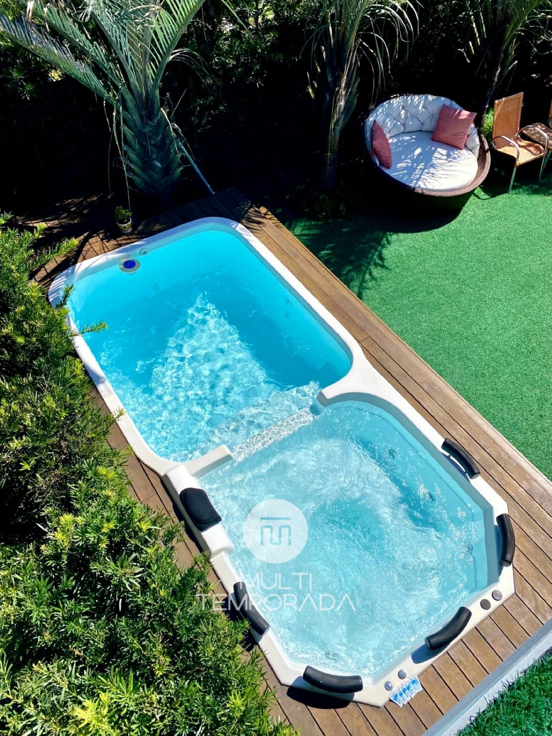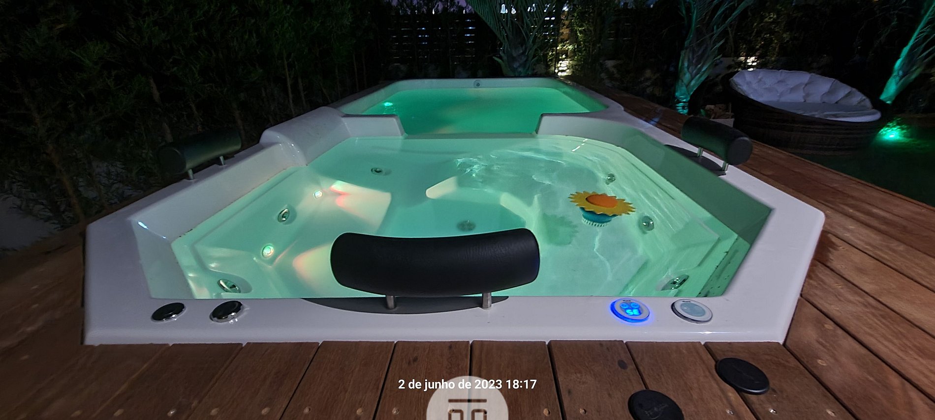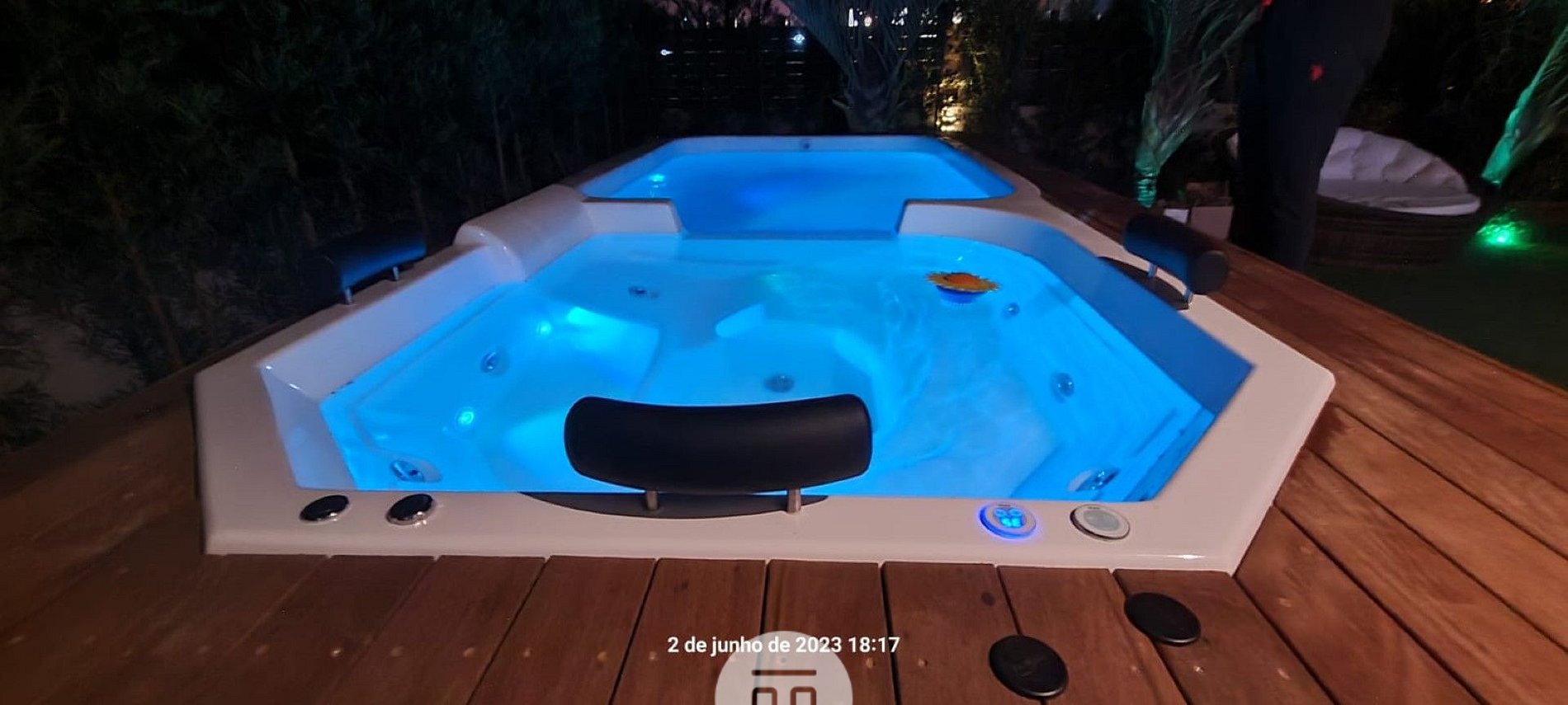 Piscina aquecida privativa com spa/jacuzzi para 7 pessoas, lounge com parrilla e Tv smart 55 polegadas, fire pit (praça de fogo) e som ambiente;