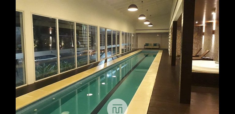 Piscina aquecida privativa com spa/jacuzzi para 7 pessoas, lounge com parrilla e Tv smart 55 polegadas, fire pit (praça de fogo) e som ambiente;