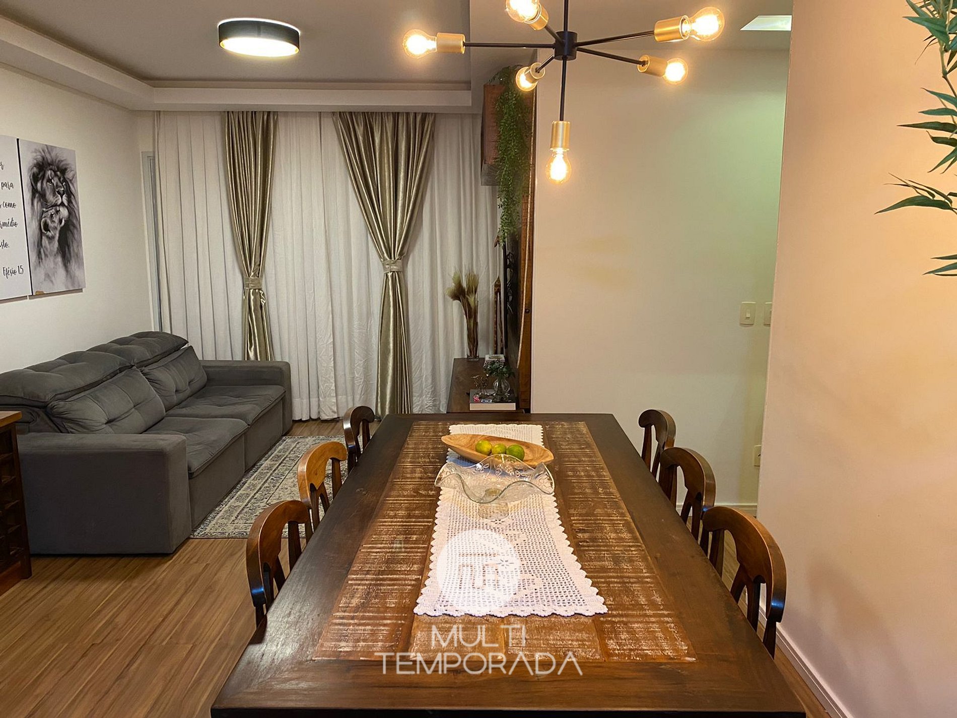 São 75 metros quadrados com varanda com churrasqueira, três quartos climatizados, sendo uma suíte , cozinha e sala integrados com ar-condicionado split também. A cozinha é equipada com fogão, forno, geladeira, microondas, cafeteira de cápsula, chaleira elétrica, sanduicheira, airfrayer, máquina de fondue e todos utensílios necessários para fazer uma boa refeição. A sala climatizada possui uma TV Smart. Possuímos Wi-Fi no apartamento (100 mega), além da internet oferecida pelo próprio condomínio, rouparia de cama e banho completa, ferro de passar, secador de cabelo, máquina de lavar roupas e secadora;