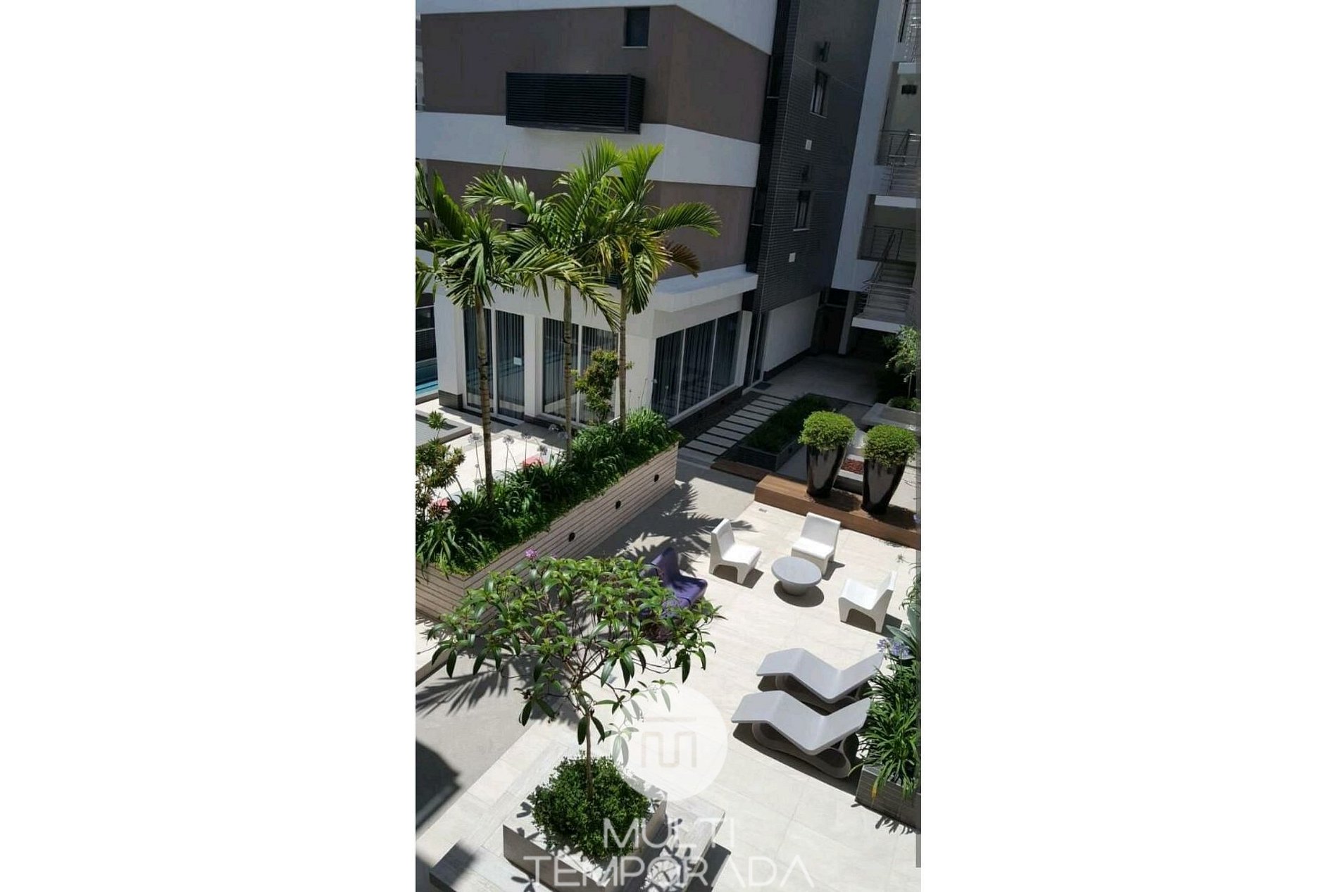 Apartamento em condomínio fechado com piscina, academia, segurança 24 horas e câmeras de monitoramento. 01 vaga de garagem. Possui uma suíte com cama de casal e na sala possui um sofá-cama de solteiro, ar-condicionado split e reiki de vidro com vista pro mar. Além disso, disponibilizamos: roupa de cama, travesseiros, rouparia de banho (toalhas), Internet Wi-Fi 120 mega e TV Smart. Ademais, máquina de lavar. Cozinha completa com fogão, geladeira, micro-ondas e utensílios de cozinha.