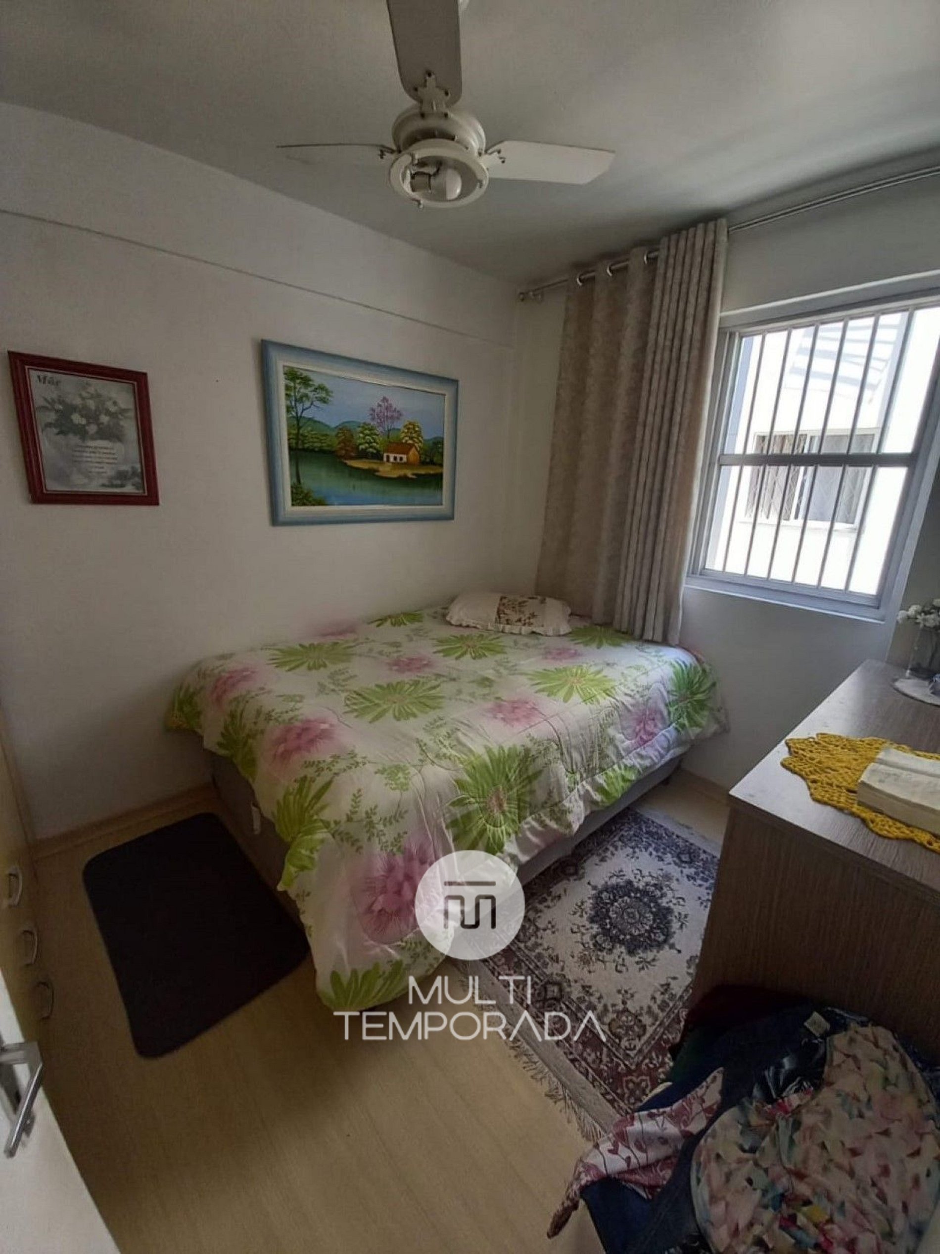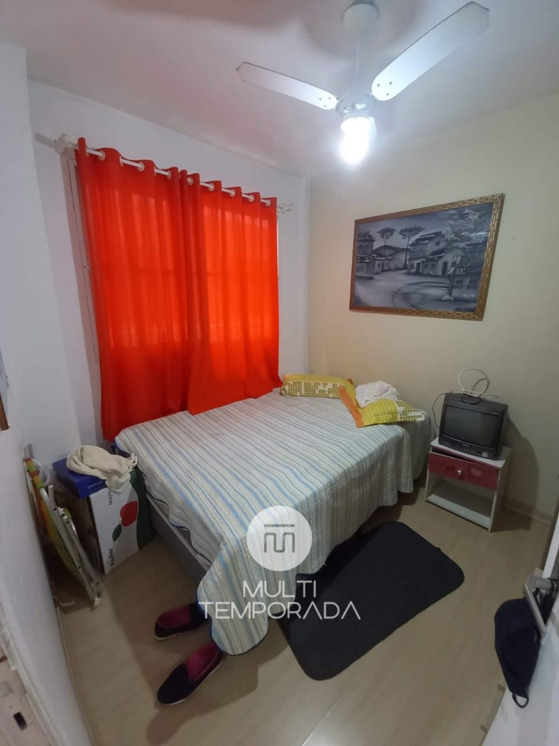 Dormitório 2: Cama Box de Casal e Ventilador de Teto;