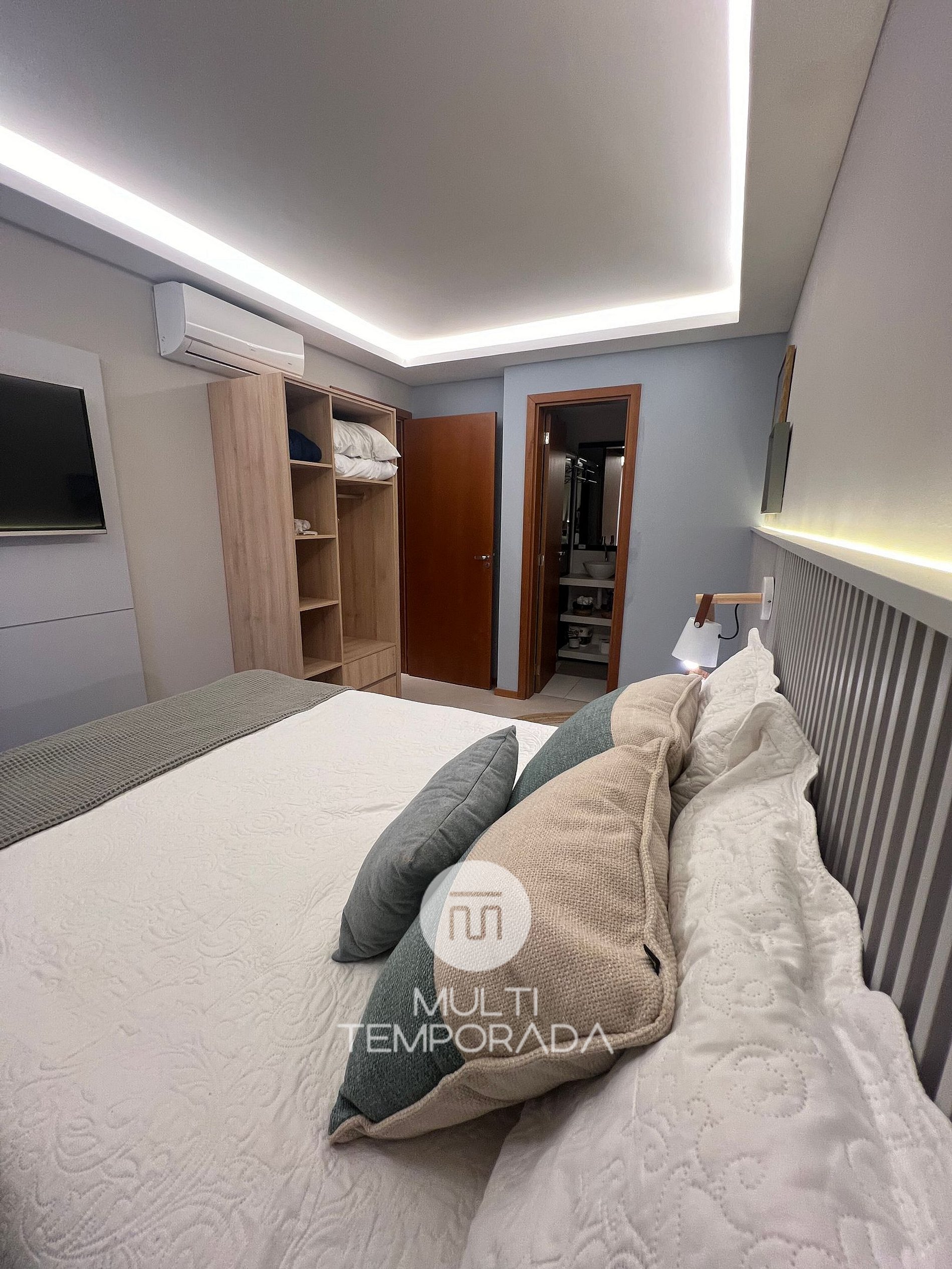 Dormitório: Cama de casal e Ar-condicionado;