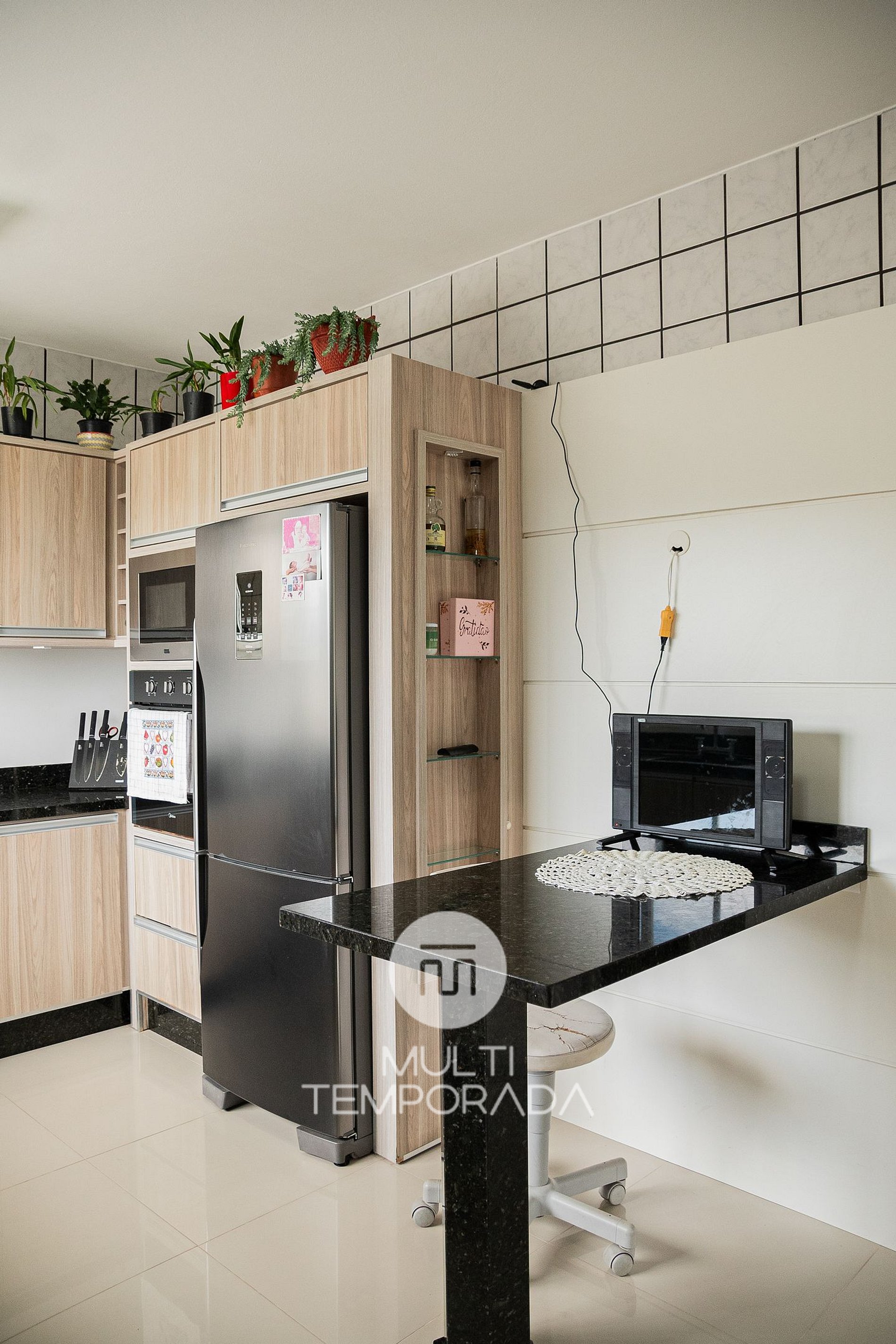 Cozinha completa: fogão cooktop, geladeira com freezer, forno elétrico, microondas, liquidificador, louças e talheres e utensílios básicos de cozinha;