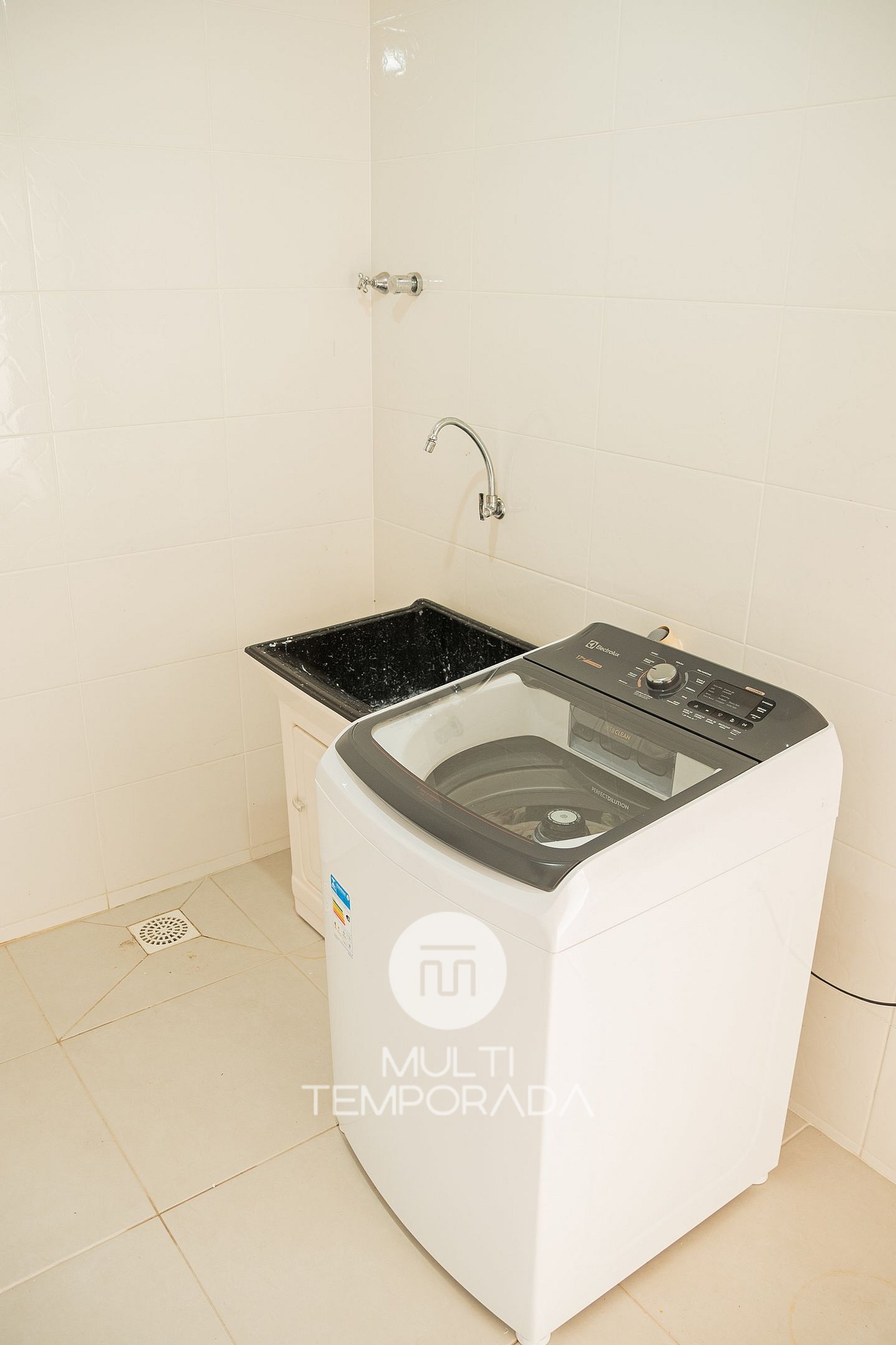 Comodidades da unidade: Rouparia de cama completa, toalhas de banho, ferro de passar e máquina de lavar;