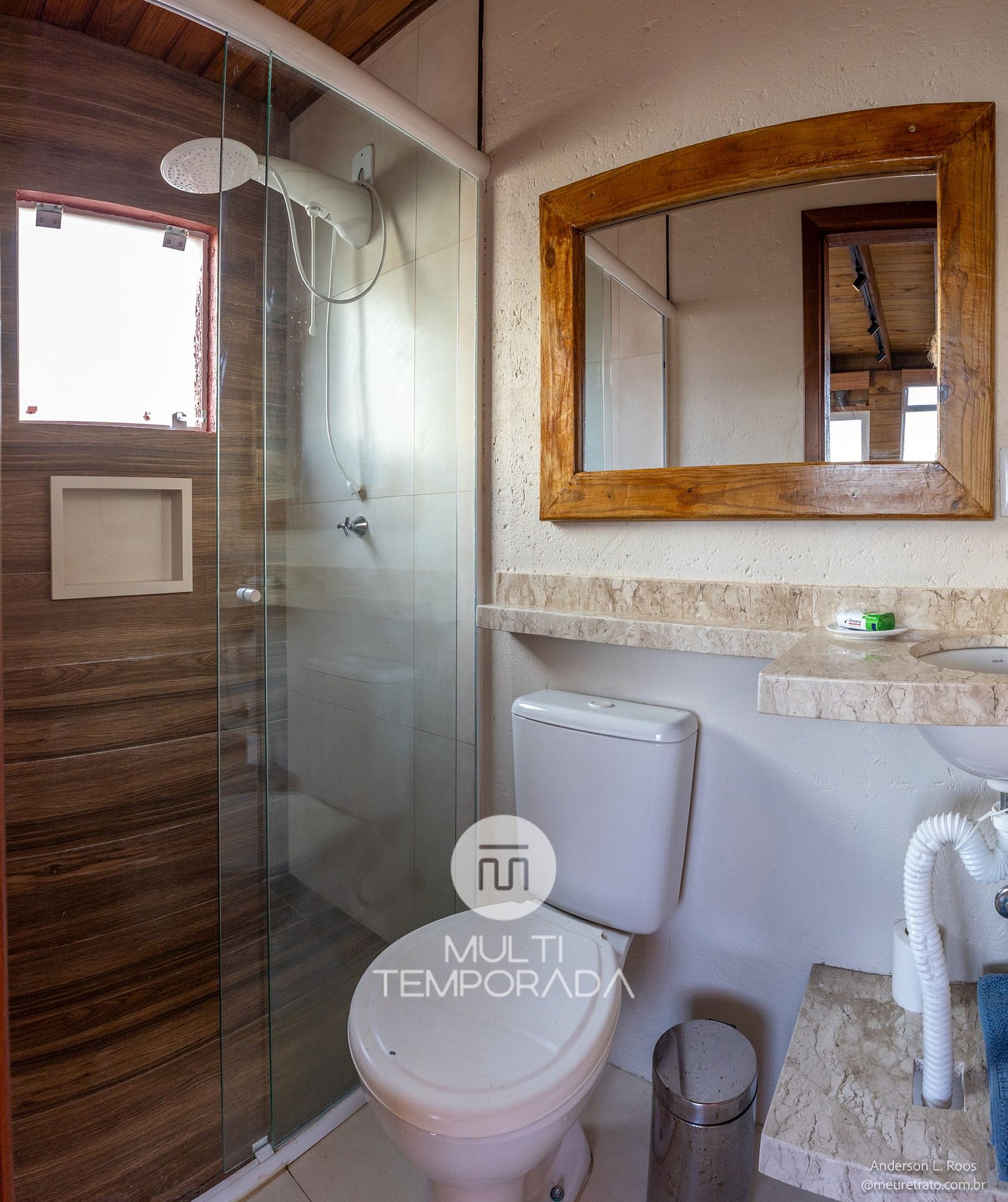 A cabana toda climatizada possui 75m² e possui capacidade até 05 hóspedes com máximo de conforto.