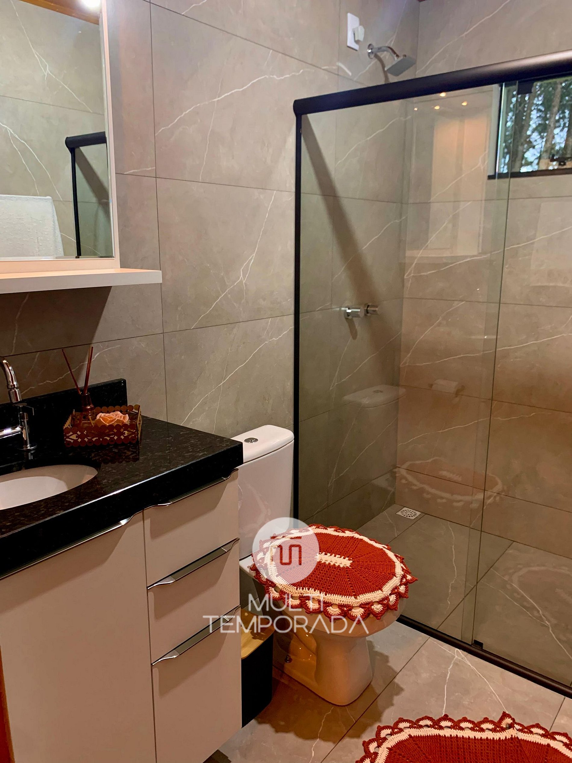 Comodidades da unidade: A unidade conta com deck com mesa e cadeiras, fogo de chão, balanço, jardim para passeio, estacionamento amplo, lareira interna, churrasqueira com grelha e vista para as montanhas;