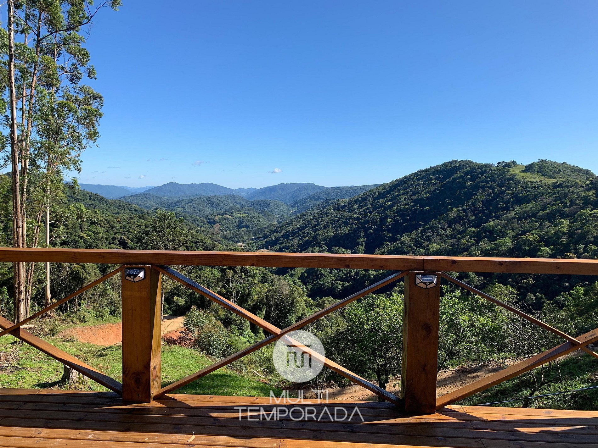 Comodidades da unidade: A unidade conta com deck com mesa e cadeiras, fogo de chão, balanço, jardim para passeio, estacionamento amplo, lareira interna, churrasqueira com grelha e vista para as montanhas;