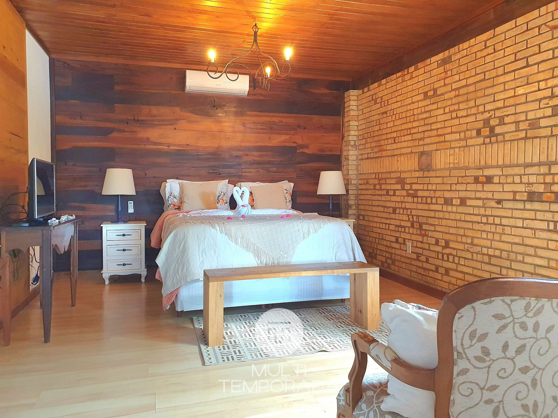 A Multitemporada apresenta O Rancho das Neves, pertencente à charmosa cidade de Rancho Queimado/SC há 60km de Florianópolis. Um espaço aconchegante e agradável, perfeito para casais. A propriedade tem como destaque as suas opções de lazer, o amplo espaço de jardim, lago, cachoeira, trilhas, café da manhã, bem como seu conforto e localização, ficando em uma região montanhosa (serra), clima agradável e rodeada pela natureza. Essa opção possui lareira interna.