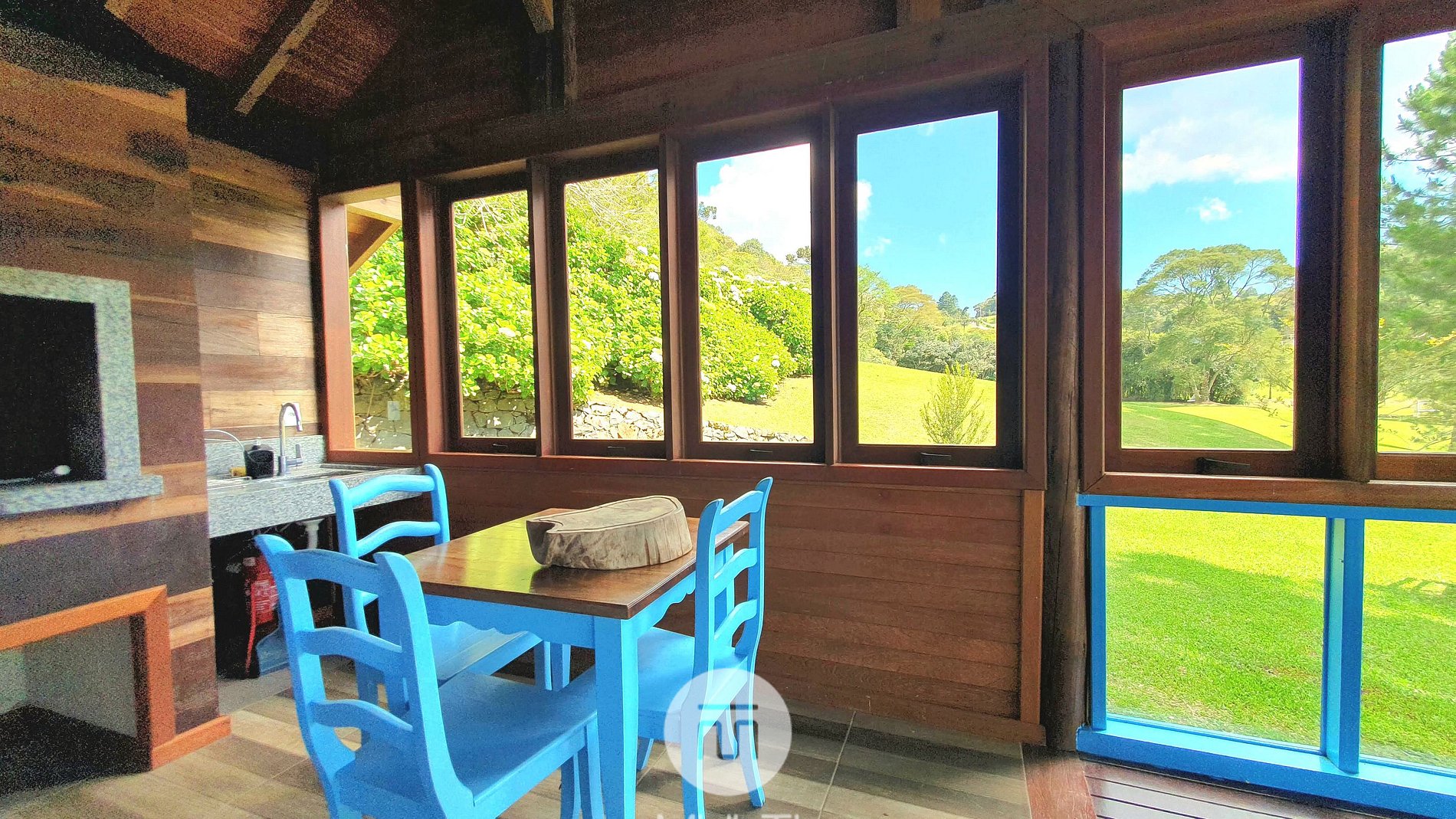 A Casa Rosalina possui 110m² de área construída. Ela é disposta de 1 dormitório, 1 banheiro, cozinha completa, sala de estar/jantar, varanda com churrasqueira, vista para as montanhas e estacionamento amplo para 1 carro.