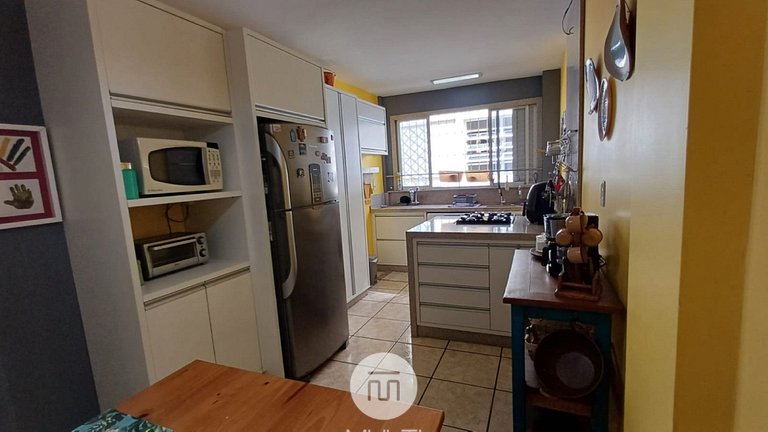 O apartamento possui seus cômodos divididos em 1 suíte, 1 dormitório, cozinha, banheiro social e sala de jantar e estar integrados. A cozinha é equipada com geladeira dúplex, fogão com forno, cafeteira elétrica, forno elétrico pequeno, chaleira elétrica, airfrayer, liquidificador, batedeira e pipoqueira e todos utensílios necessários para fazer uma boa refeição. Além disso, oferecemos rouparia de cama completa, rouparia de banho e Internet WiFi de qualidade.