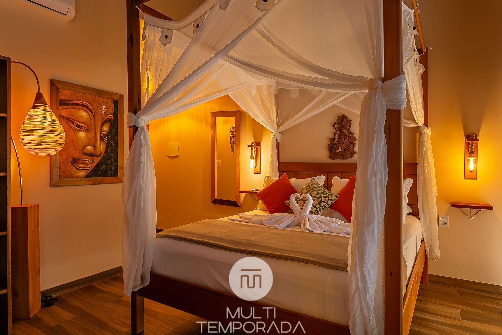 Belíssimas suítes de luxo para casal em um hotel boutique, totalmente novo, localizado a 120 metros do centrinho do Rosa! Ambiente zen, inspirado no Budismo e Hinduísmo, com um belíssimo jardim perfeito para relaxar, terraço panorâmico com vista privilegiada do pôr-do-sol e itens decorativos importados da Indonésia! Café da manhã com ingredientes orgânicos e coloniais, feito com muito amor! Apenas 900 metros até o Rosa Norte!