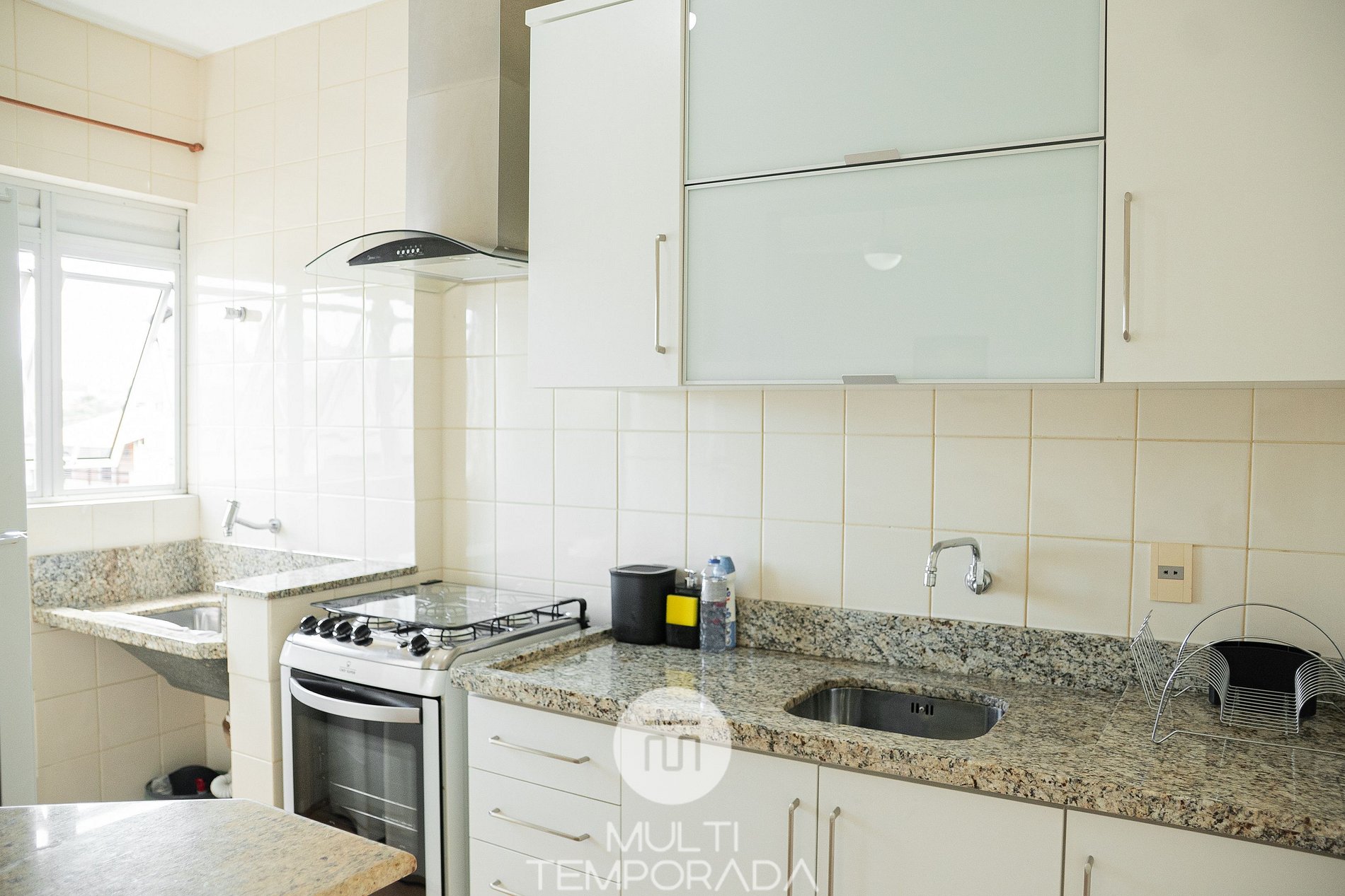 Para sua comodidade oferecemos também: Máquina de lavar roupas, secador de cabelo e ferro de passar roupa churrasqueira na sacada com espeto, grelha e garfo.