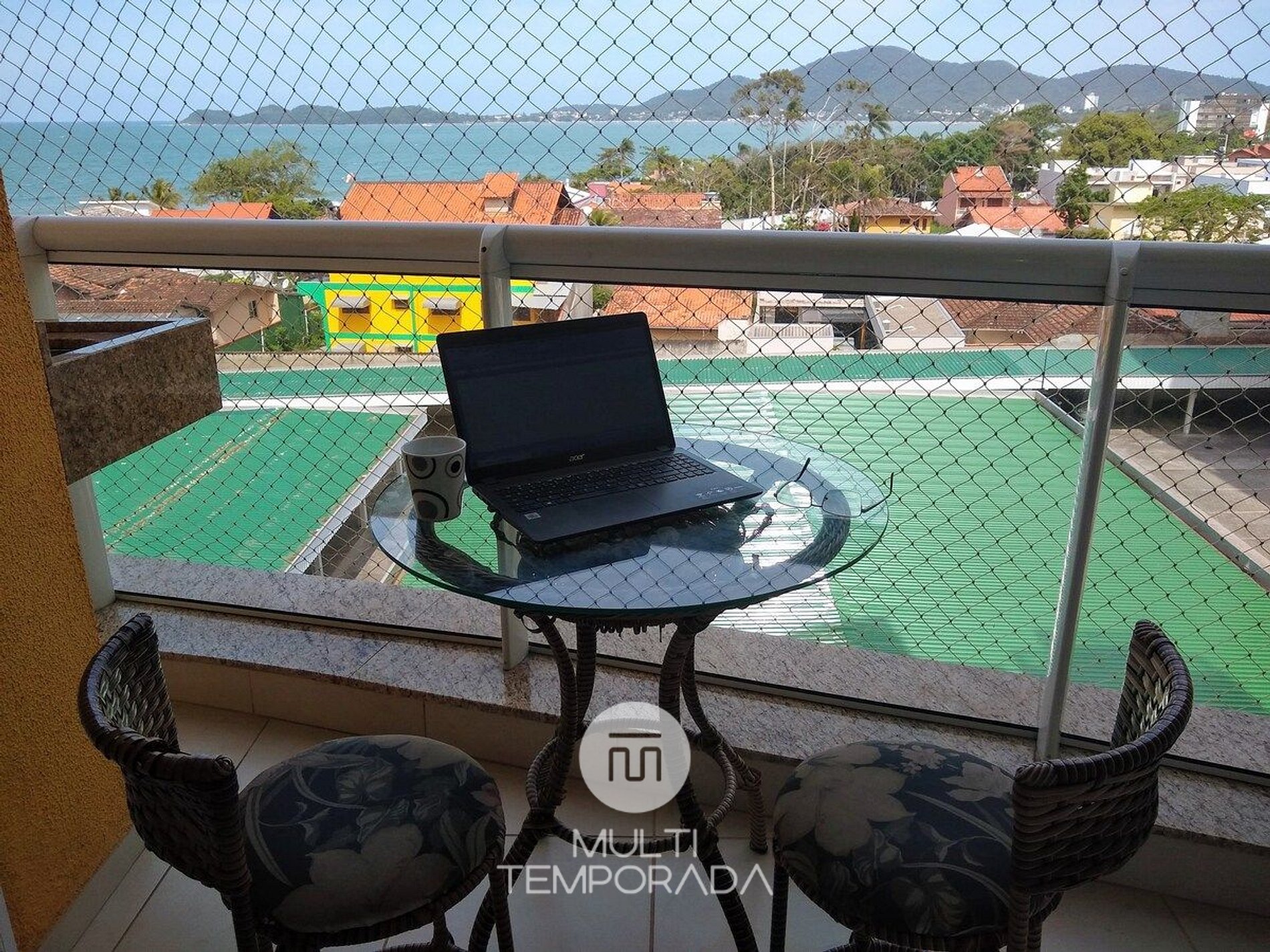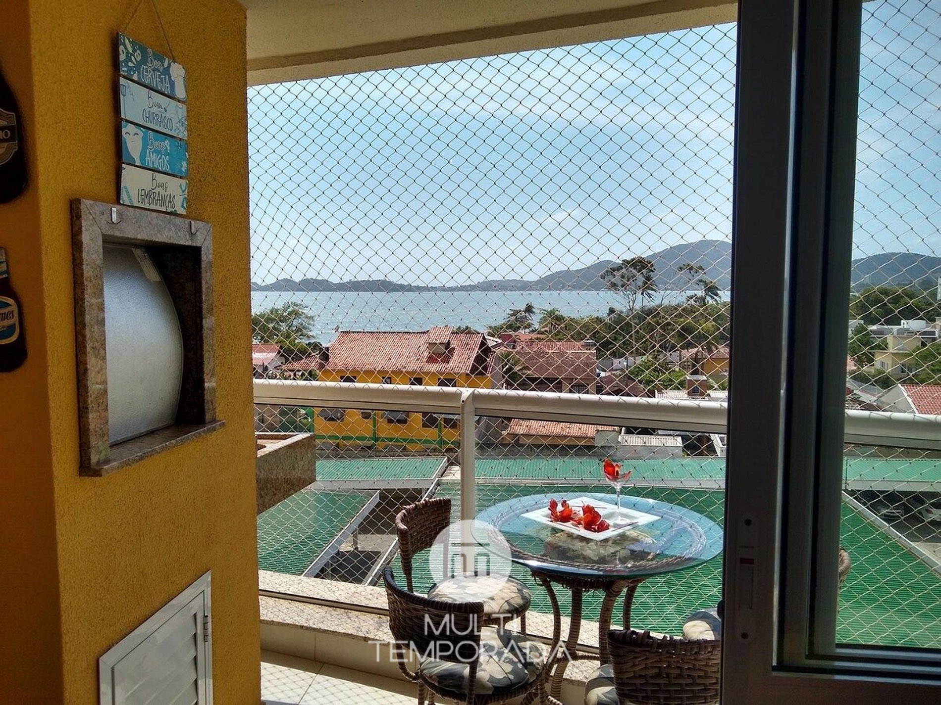 - Apartamento na Torre 3, no 4º andar com sacada e vista para o mar. Possui tela de proteção na sacada e nas janelas;