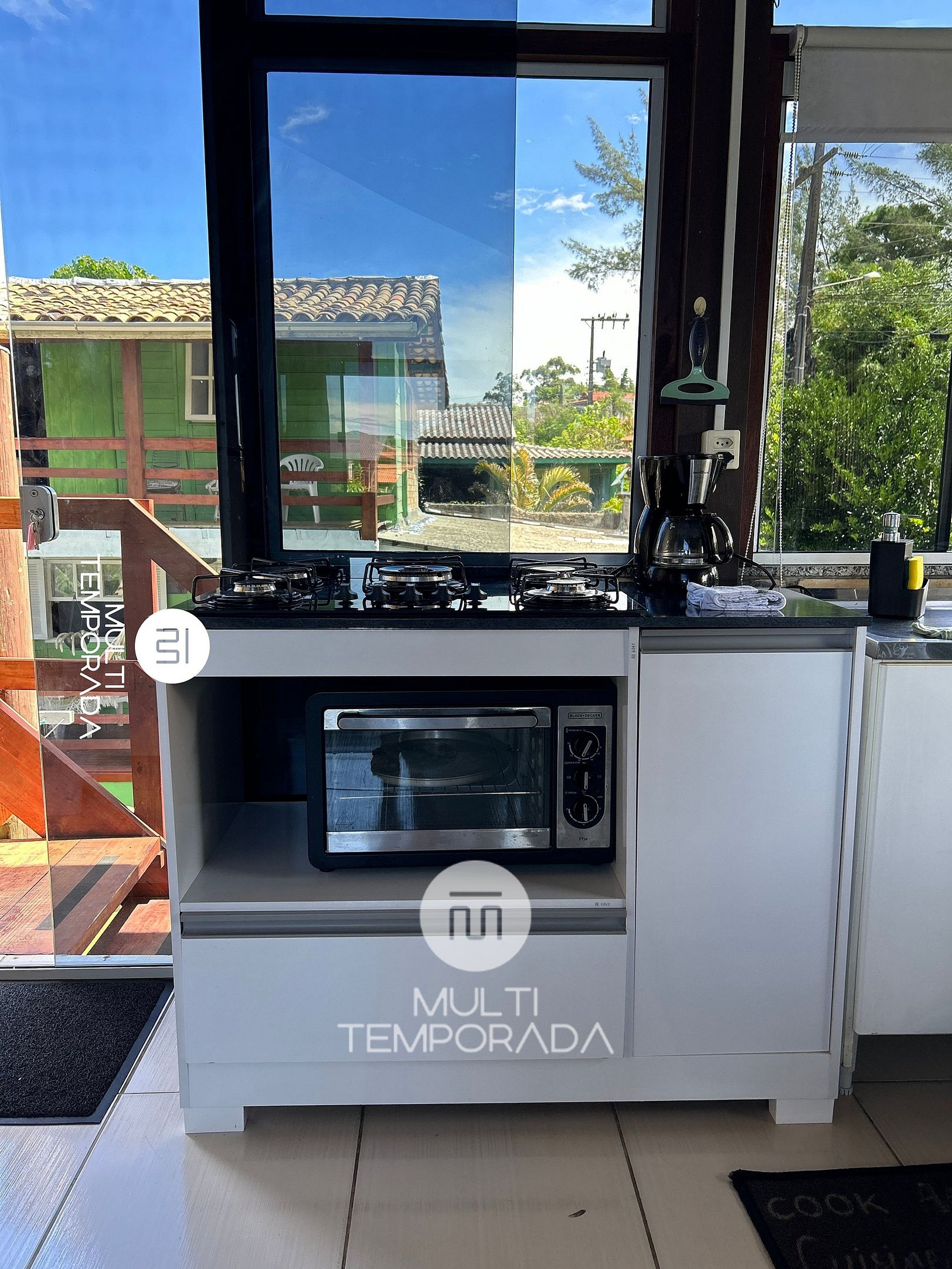 A casa possui um dormitório e um mezanino, sala de estar, cozinha completa e banheiro. A capacidade vai até 7 hóspedes.