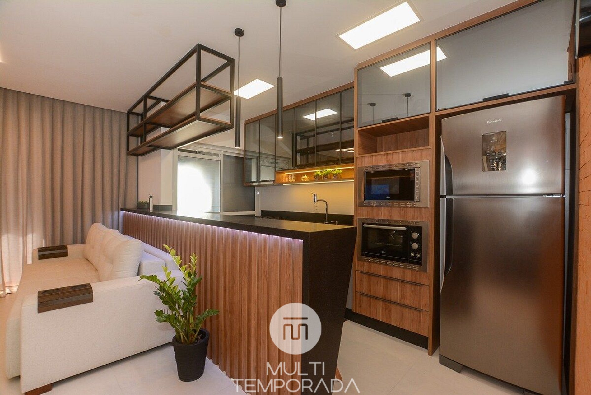 A cozinha/sala são integradas em conceito aberto. A cozinha é equipada com fogão, forno, geladeira, microondas, purificador de água, cafeteira, torradeira, aifryer, chaleira elétrica, liquidificador e todos utensílios necessários para fazer uma boa refeição.