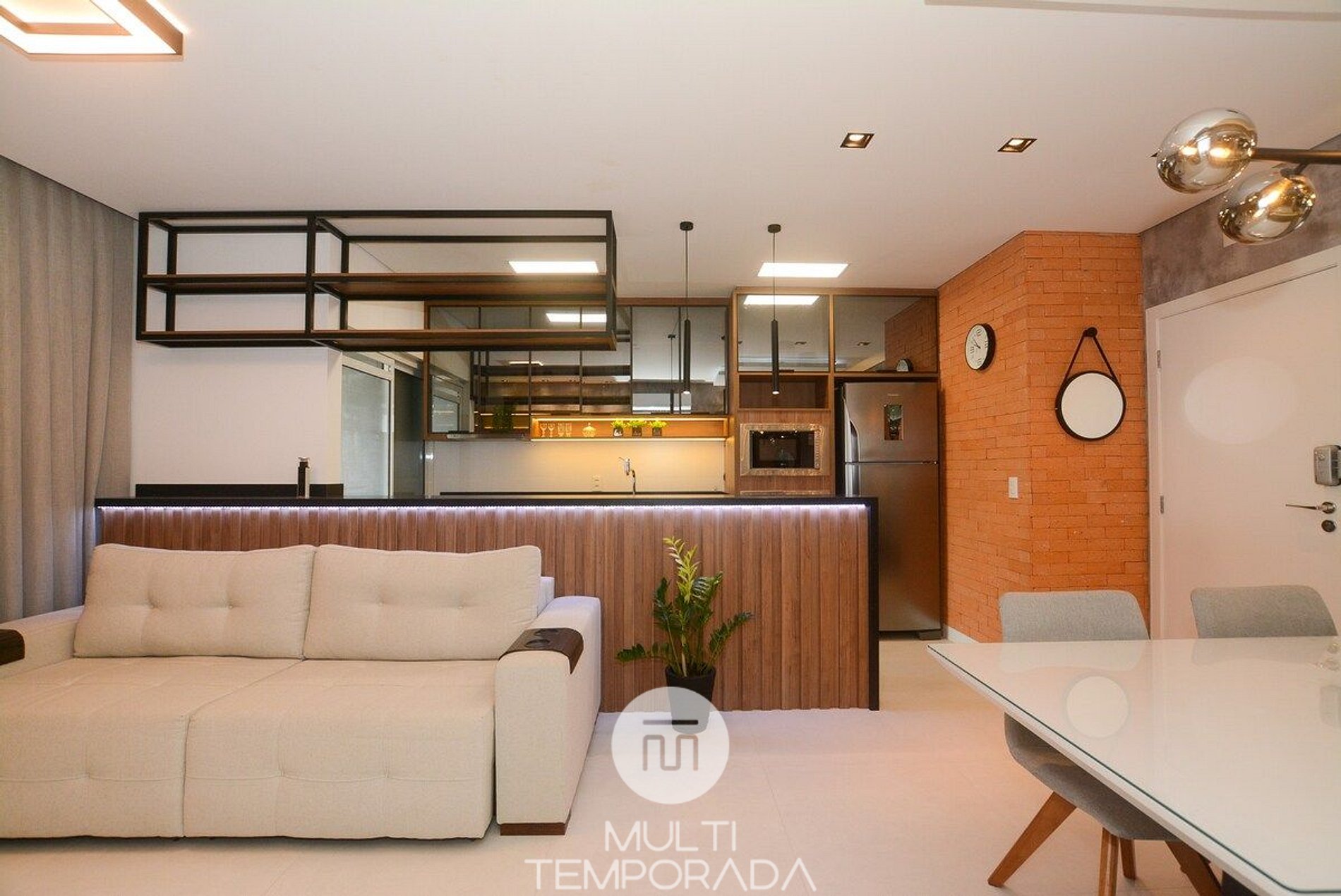 O apartamento é novo, possui 77m² e tem como destaque sua arquitetura. São 92 metros quadrados com sacada com churrasqueira, adega e cervejeira, dois dormitórios climatizados, sendo uma suíte, cozinha completa, sala de estar/jantar e banheiro social.