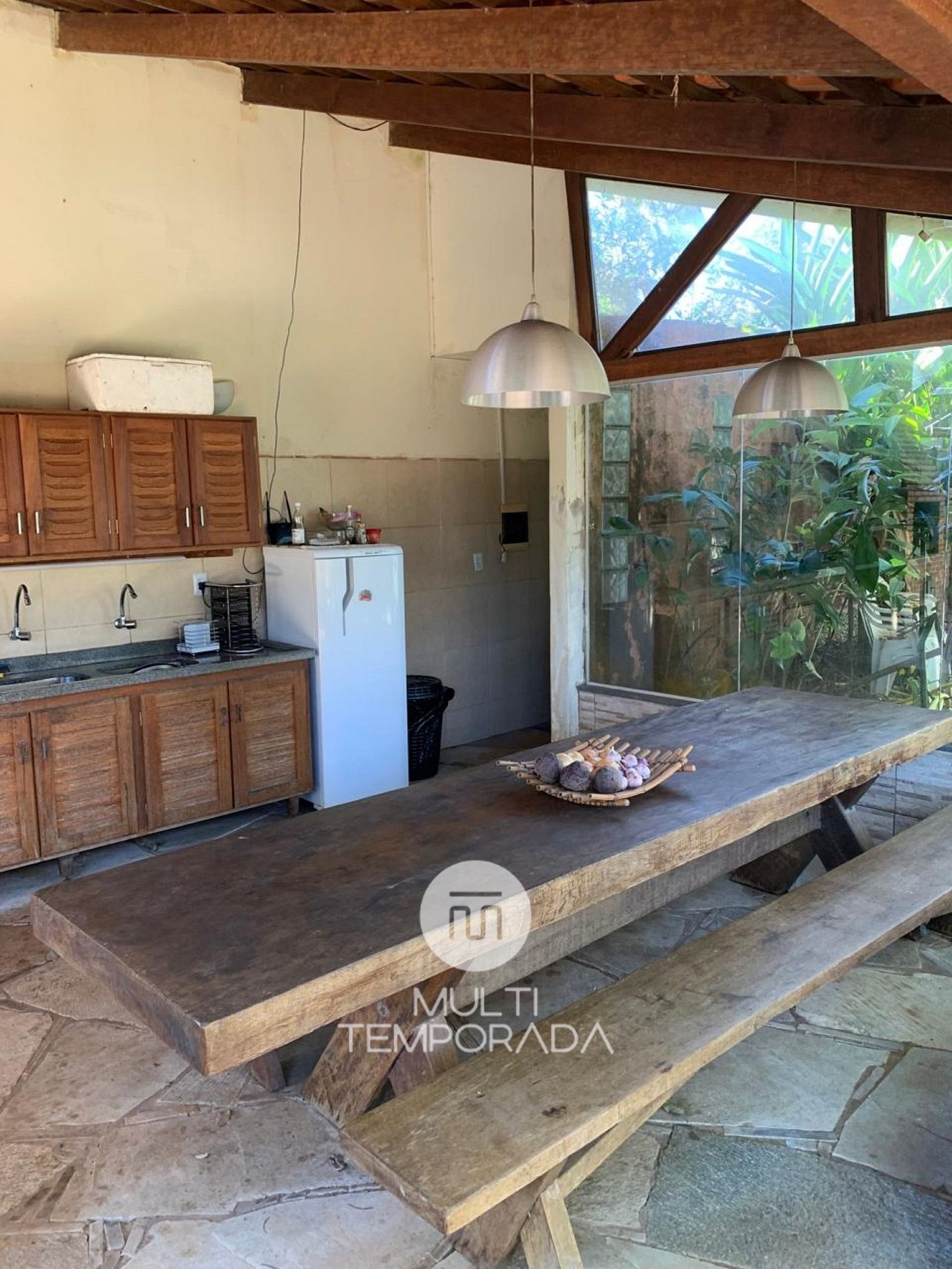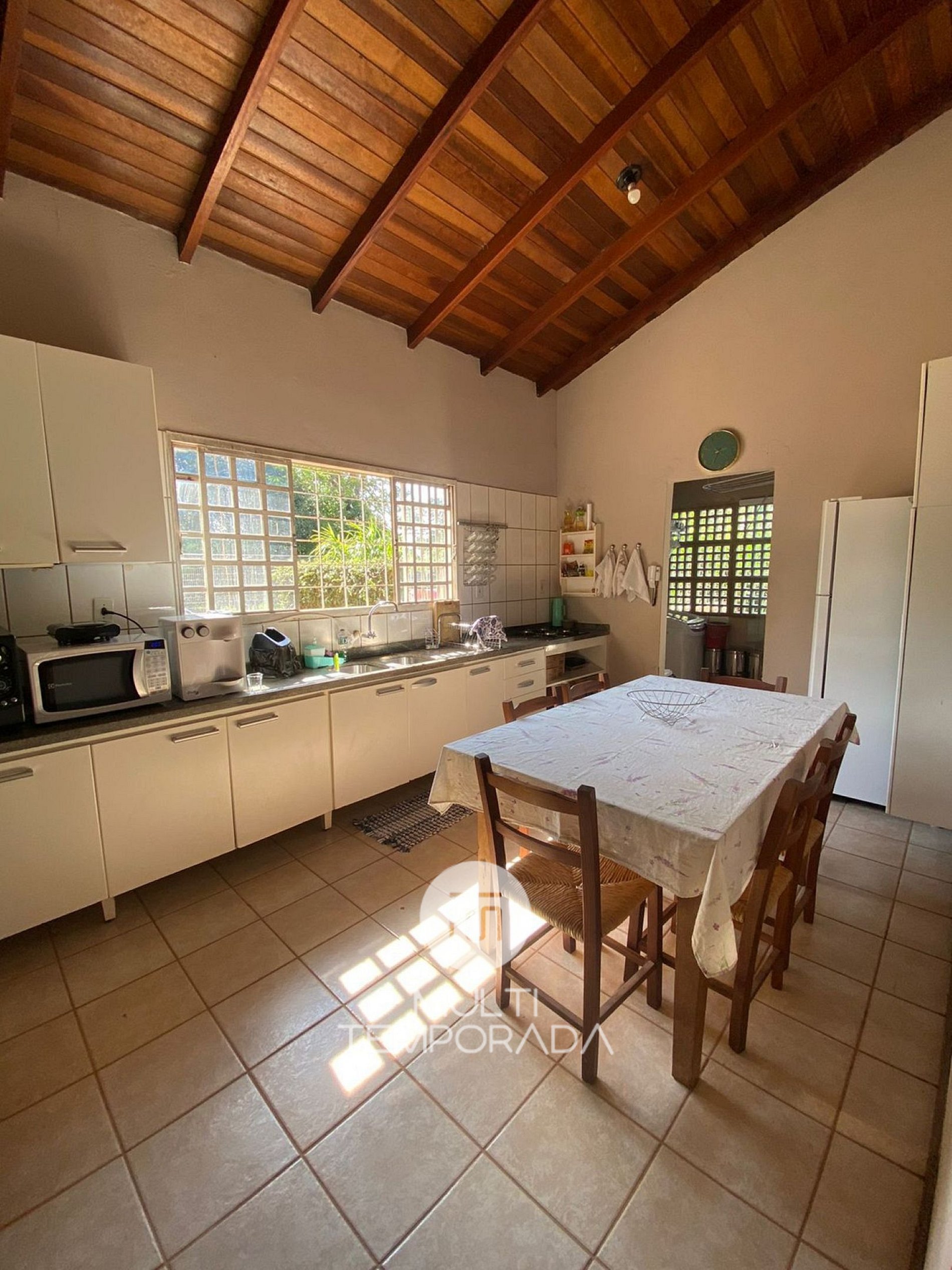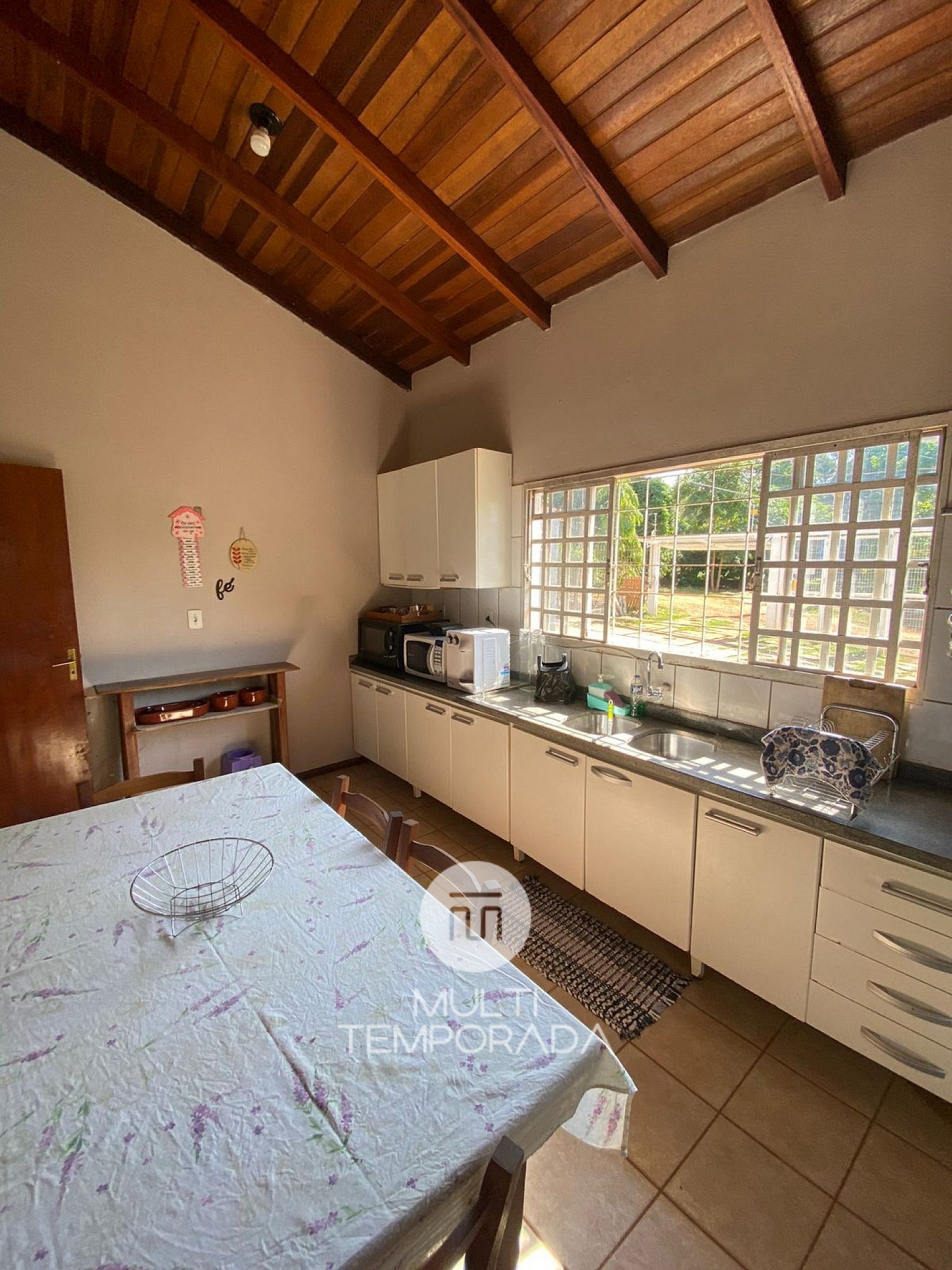 - Cozinha II compartilhada com churrasqueira e todos utensílios, como grelha, espetos, tábuas e facas, geladeira, micro-ondas, talheres, louças, panelas, bebedouro com filtro elétrico e filtro de barro;