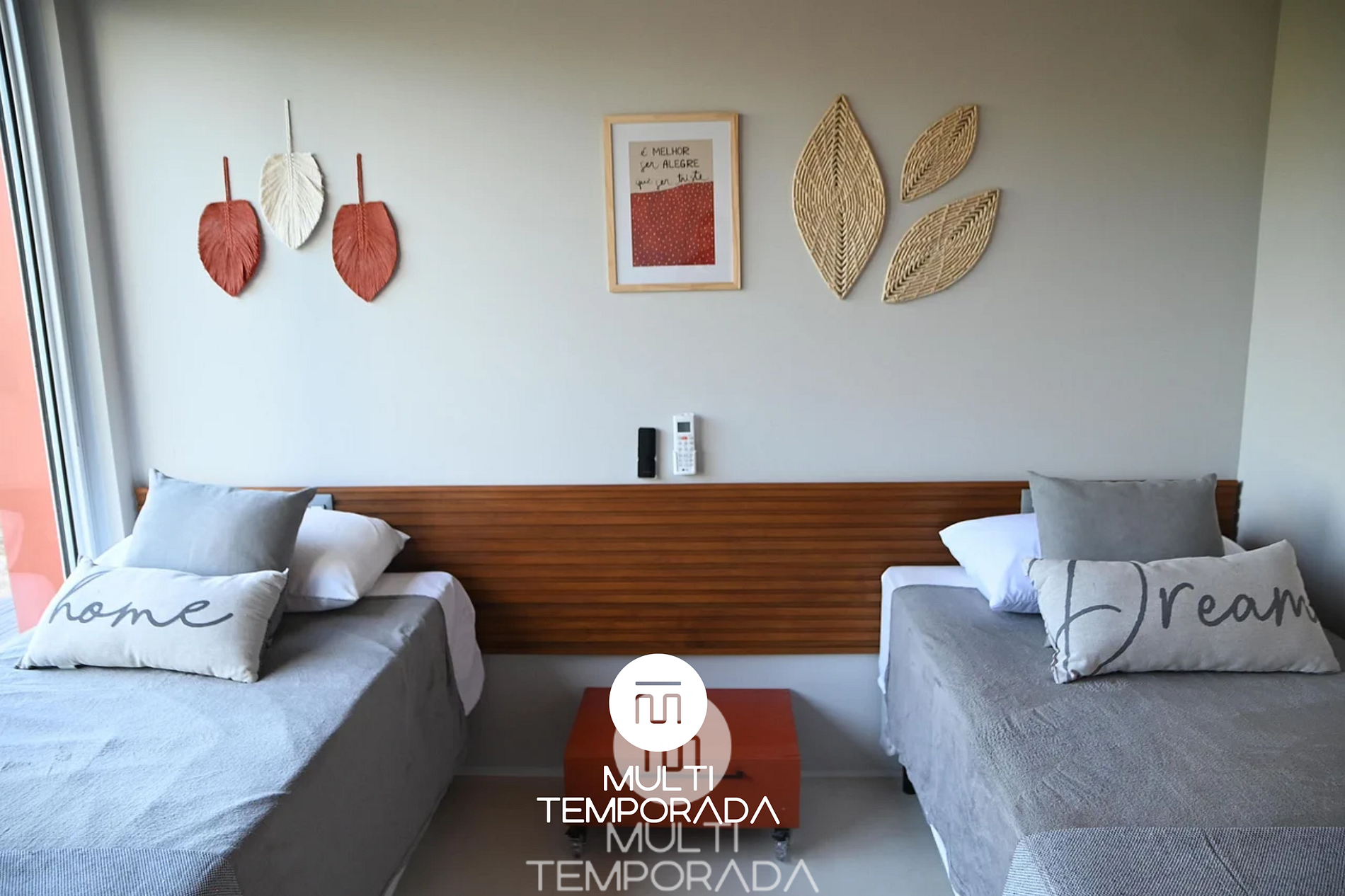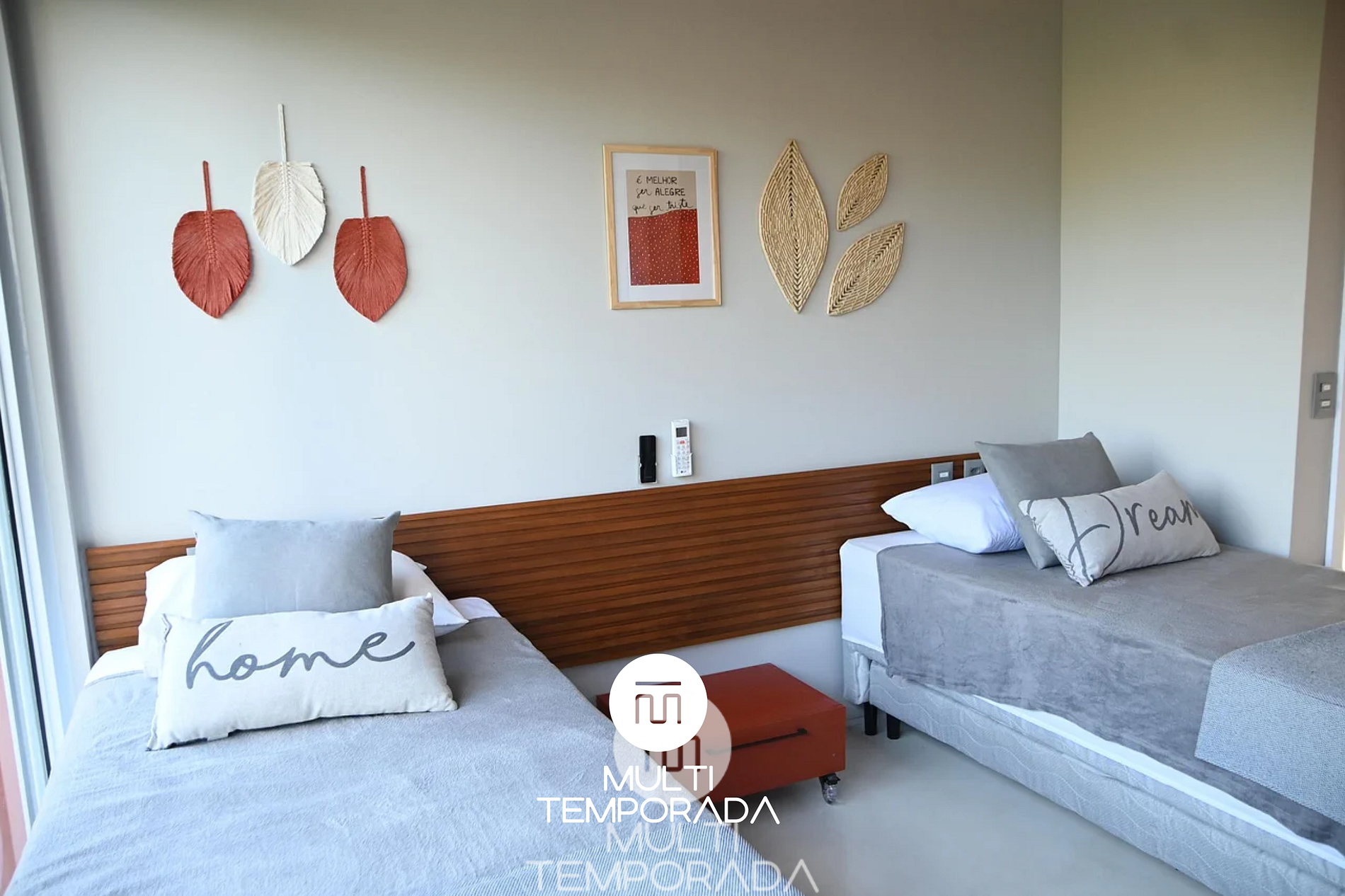 • Duas camas de solteiro (podem ser unidas em uma Cama Queen) + duas camas extras de solteiro, ar-condicionado, secador de cabelo e armário.
