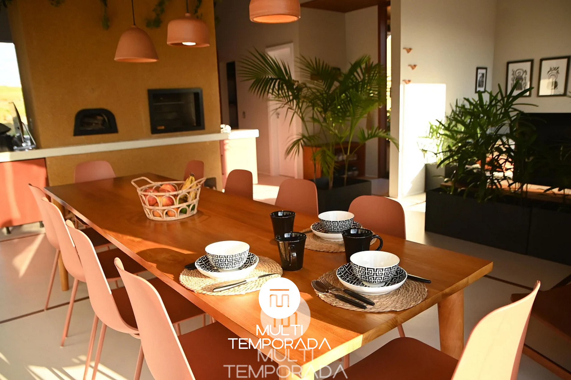 • Cozinha gourmet completa, com ilha central, churrasqueira e forno à lenha;