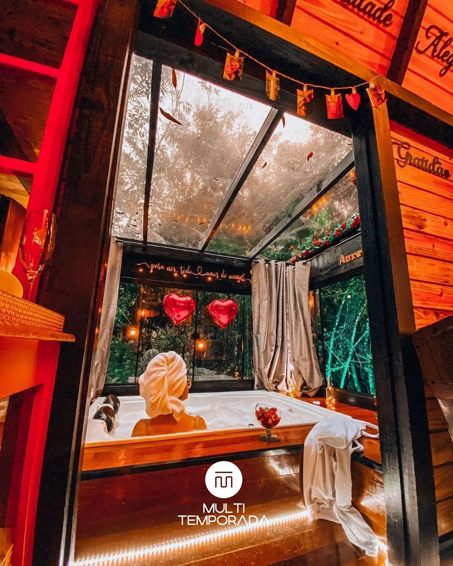 A Multitemporada apresenta o Chalé Recanto do Amor, pertencente ao município de Rancho Queimado/SC, um espaço aconchegante e agradável, perfeito para casal e momentos românticos. A propriedade tem como destaque as suas piscinas, riacho privativo, área com sinuca, clima agradável e rodeado pela natureza.