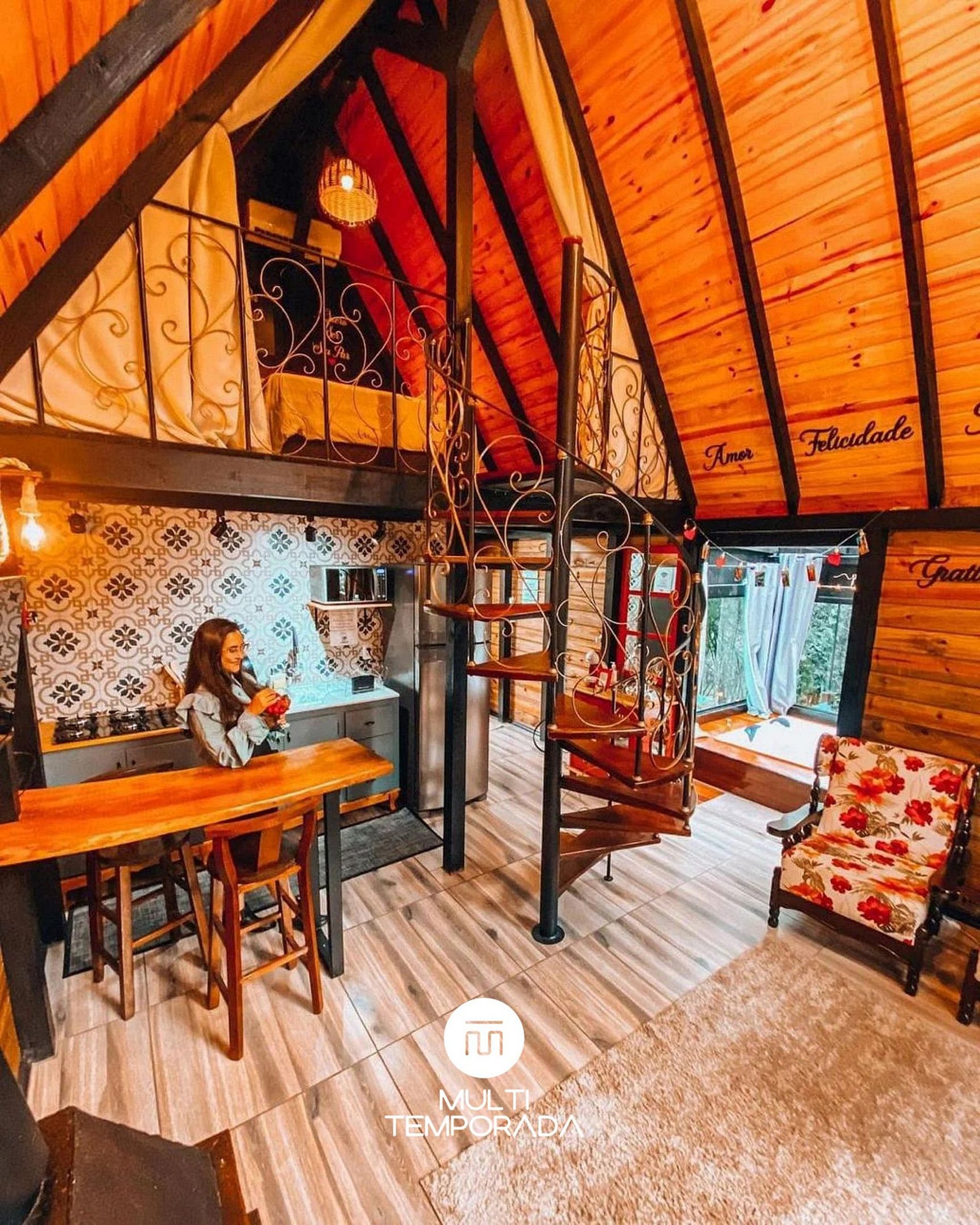 O chalé é totalmente moderno e repleto de comodidades e elegância, promove bem-estar aos hóspedes e experiências inesquecíveis. Perfeito para quem procura descansar e desfrutar de um ambiente inesquecível.