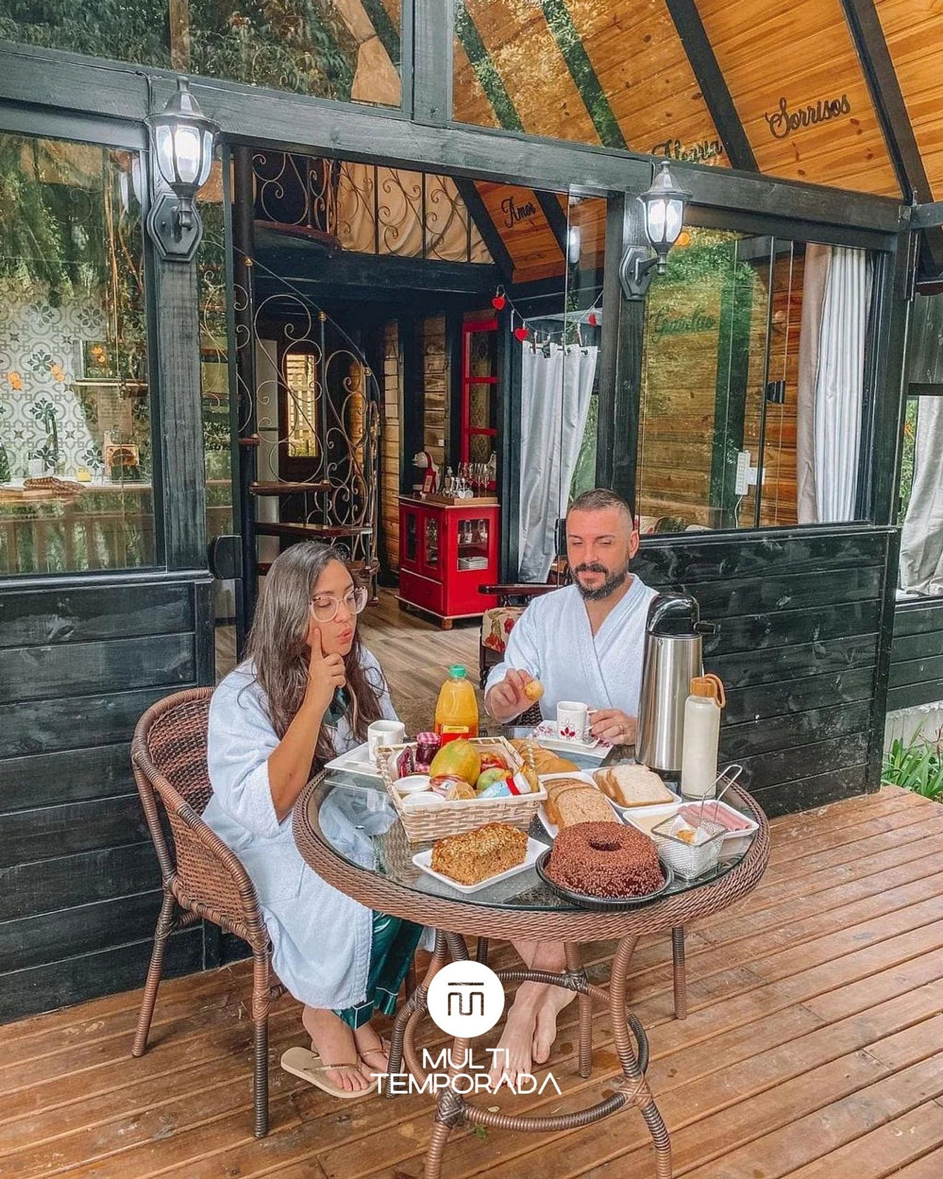 - O café da manhã é entregue no chalé entre 08:30 e 09h;