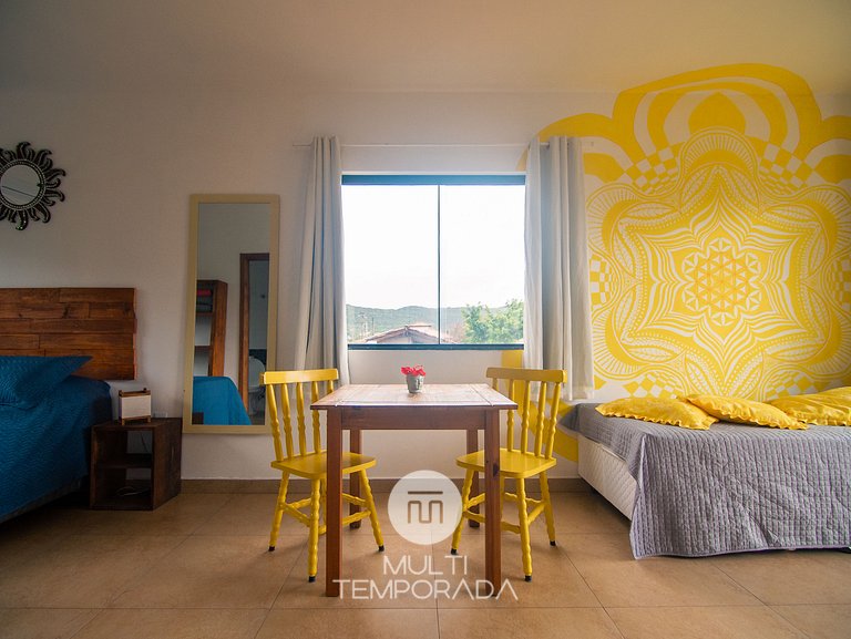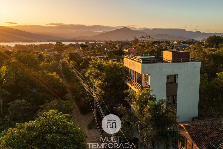 A Multitemporada apresenta: Lugar ao Sol - Flats, localizado na Praia do Rosa. O espaço é aconchegante e agradável para casais e grupos de até 4 pessoas que buscam conforto e uma experiência única a 900m do Centrinho do Rosa. Nosso espaço possui uma estrutura rodeada pela natureza, com decoração hindu totalmente pertinente à região praiana. São 6 flats (2 por andar) climatizados, com cozinha completa e varanda. Por fim, temos um terraço com vista privilegiada do pôr-do-sol e da lagoa.