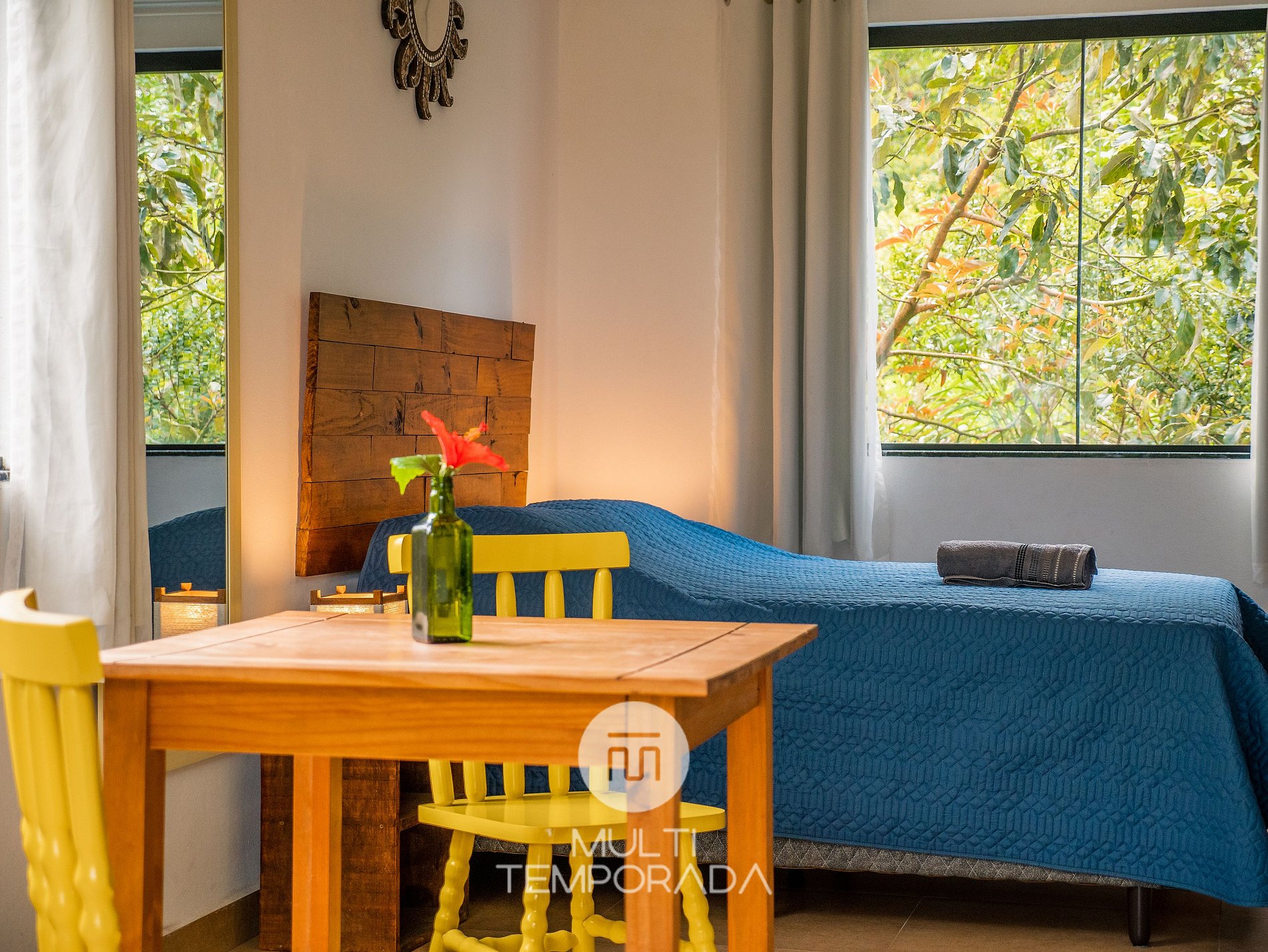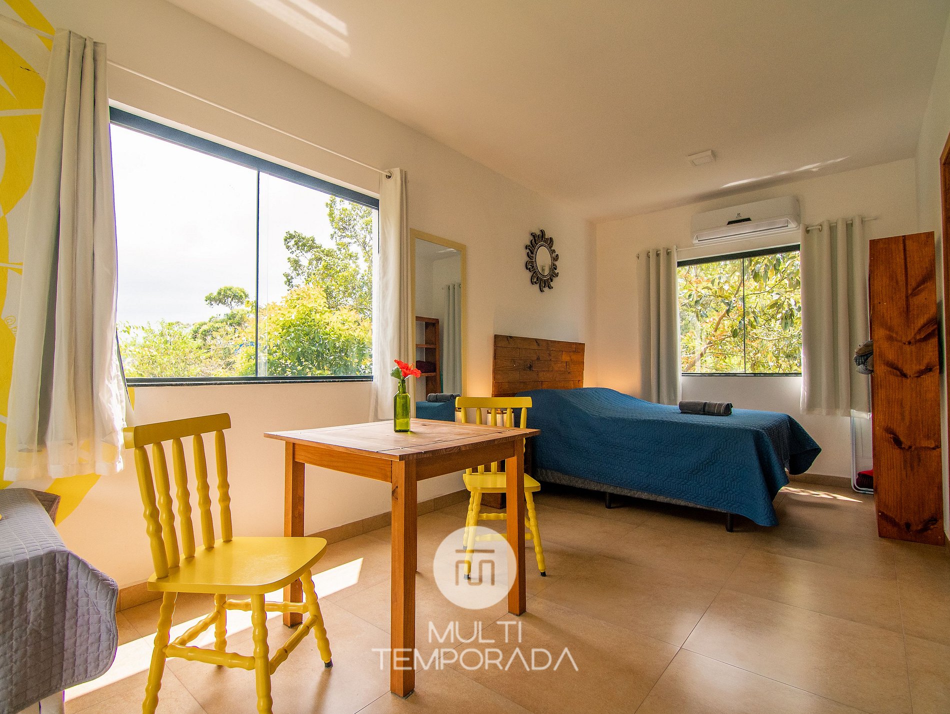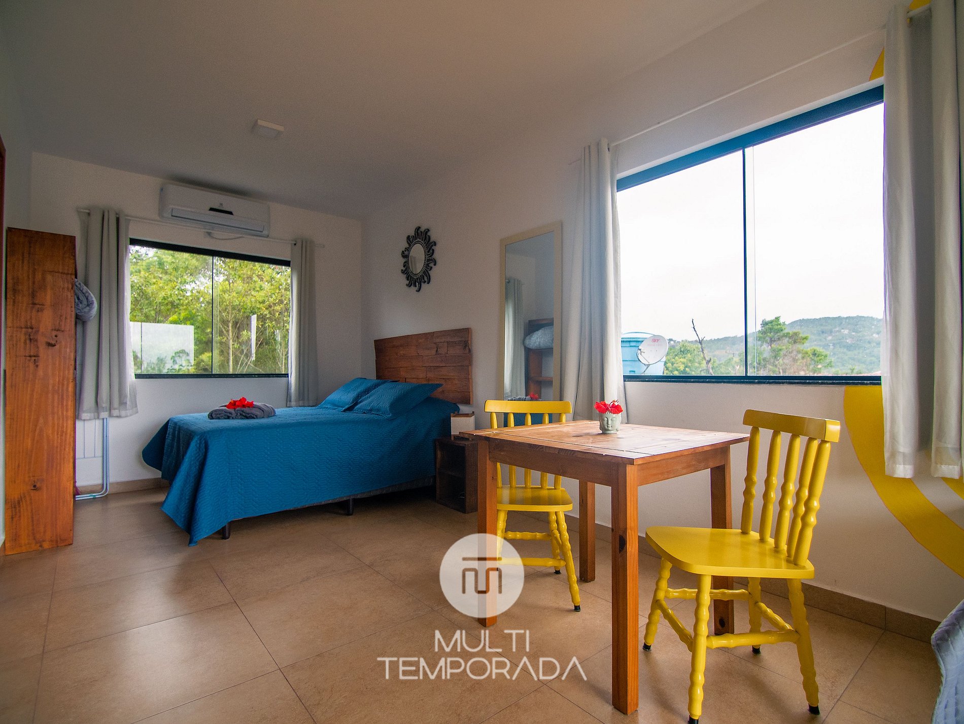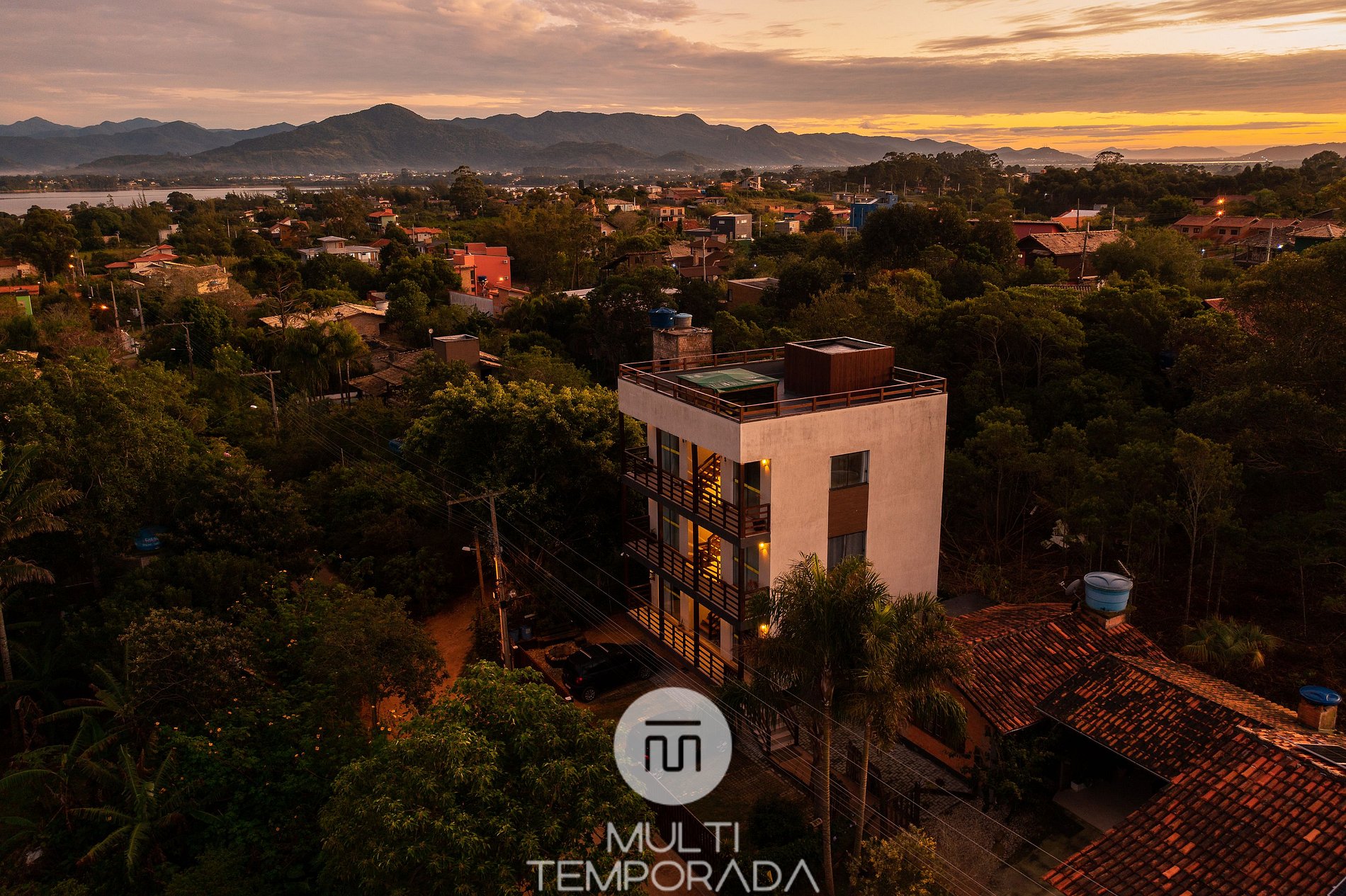 A Multitemporada apresenta: Lugar ao Sol - Flats, localizado na Praia do Rosa. O espaço é aconchegante e agradável para casais e grupos de até 4 pessoas que buscam conforto e uma experiência única a 900m do Centrinho do Rosa. Nosso espaço possui uma estrutura rodeada pela natureza, com decoração hindu totalmente pertinente à região praiana. São 6 flats (2 por andar) climatizados, com cozinha completa e varanda. Por fim, temos um terraço com vista privilegiada do pôr-do-sol e da lagoa.