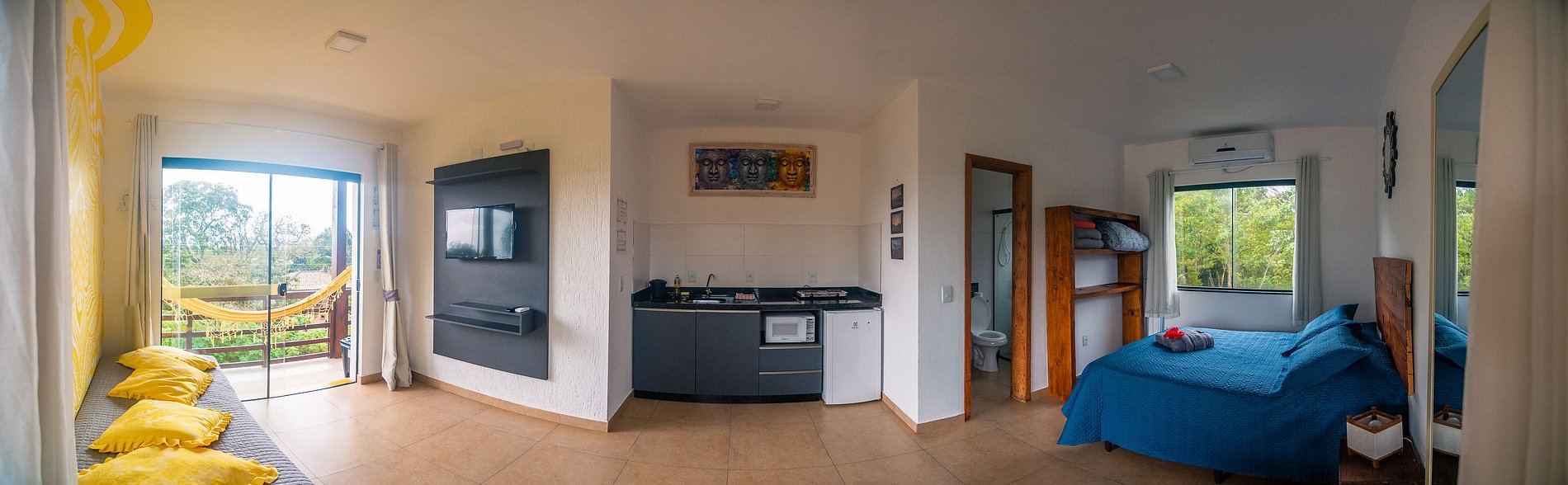Flat muito funcional, gostei muito da escolha para aproveitar Praia do Rosa-SC