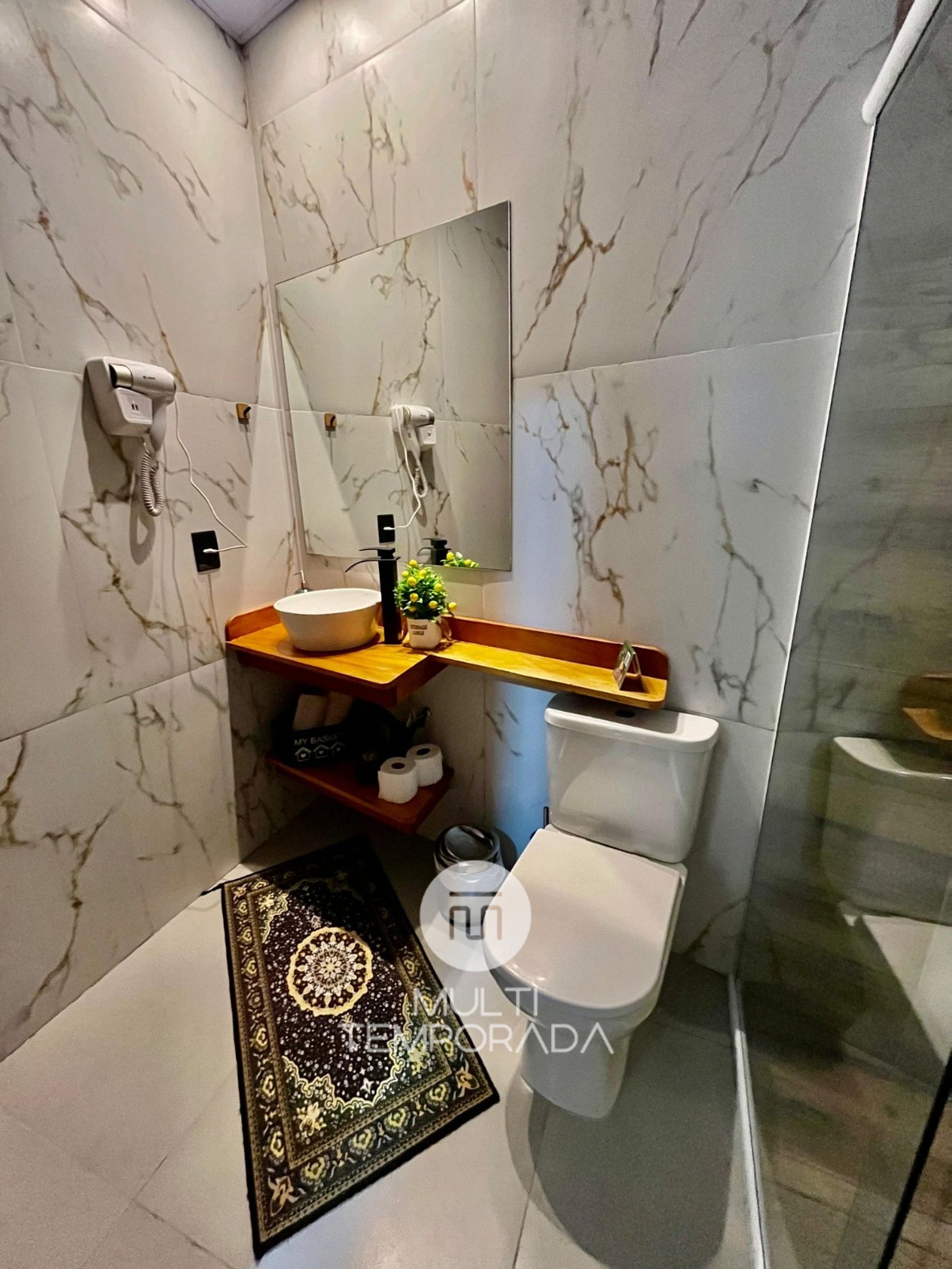 TV Smart 32” com Alexa e canais a cabo, ar-condicionado quente e frio, Wi-Fi de 700mb, roupas de cama, travesseiros e cobertores estão inclusos. O serviço de quarto é diário, com troca de toalhas no terceiro dia e de roupa de cama no quarto. Toalhas extras podem ser solicitadas separadamente.