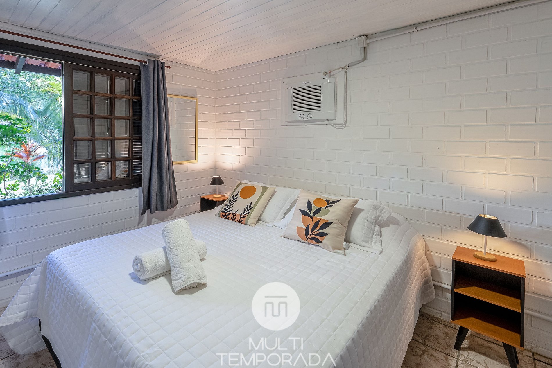 1 quarto com cama de casal + ar-condicionado